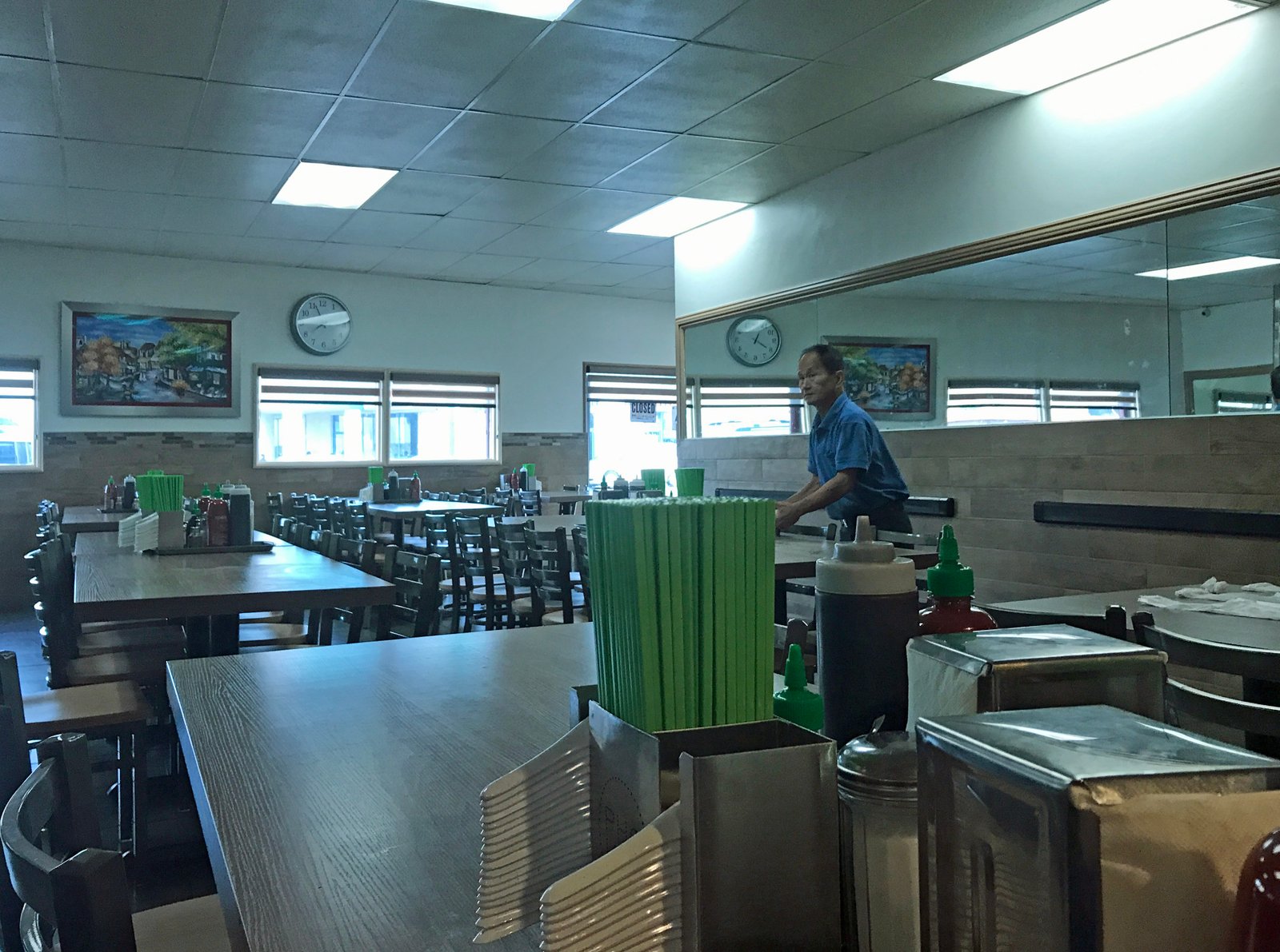Not much going on at 7am on a Sunday at Pho Hoa; just a few "old-timers"; me included. The lighting gave the place a rather eerie look.