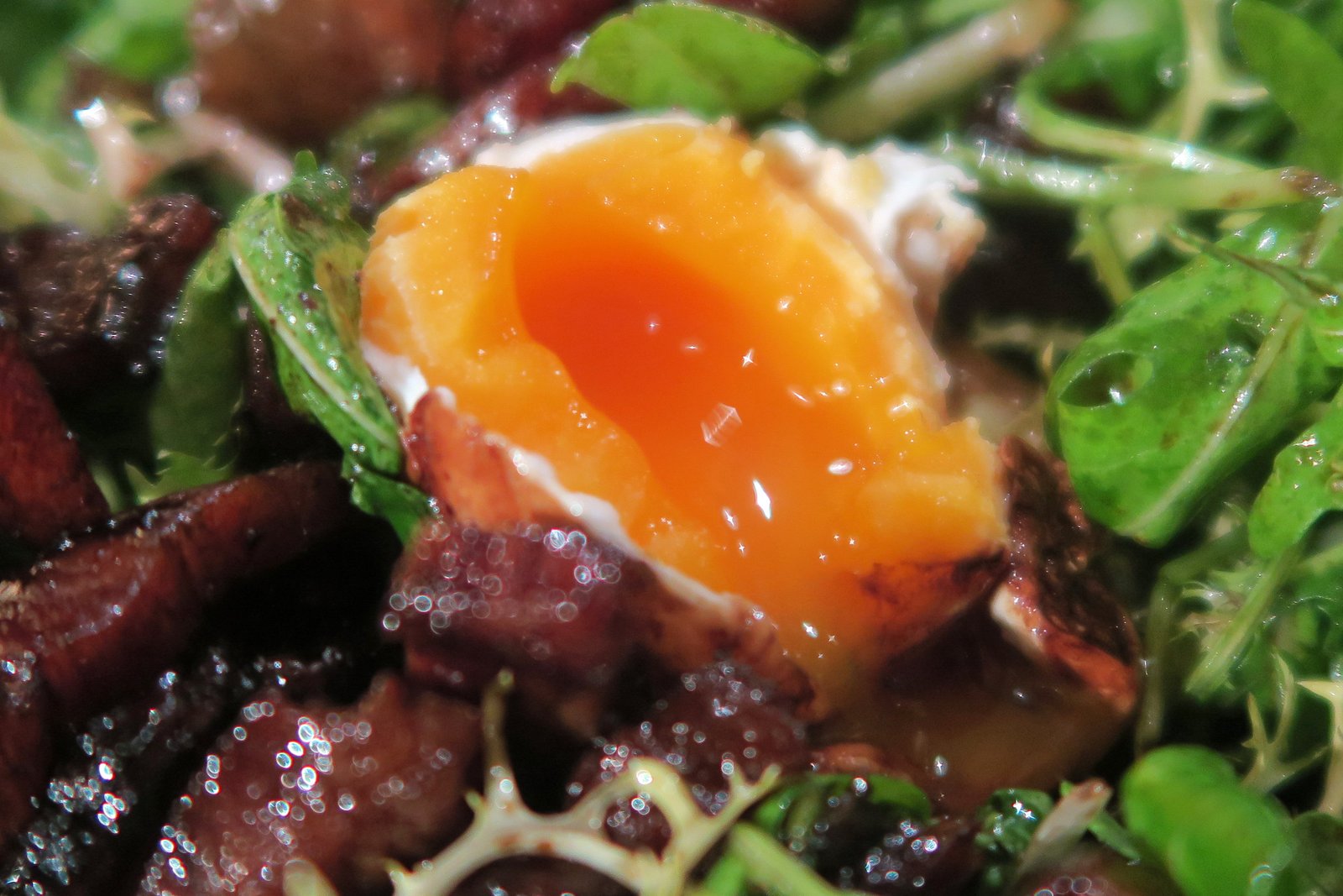 The lardons had a perfect balsamic vinegar glaze; it was crunchy, yet toothsome at the same time. The egg was poached nicely, adding a rich, creaminess to the dish, and we do prefer simply dressed arugula as was the case here.