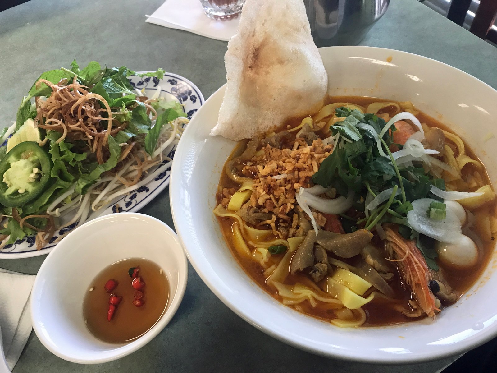 One thing that hasn't changed is the 7am opening and with the Missus having to work early on a weekend morning and waking me up…..well, I was hungry and wanted some noodle soup. Also, my Dry Cleaning Lady, had mentioned that Café Dore had started serving Mi Quang, so I wanted to check it out.