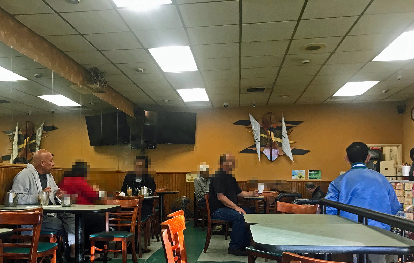 And neither has the about 12:1 ratio of men to women customers in the place. Most women just come in to do take-out orders…..though perhaps this is because I usually visit rather early in the morning? Perhaps most of the old-timers finish up and leave by lunch?