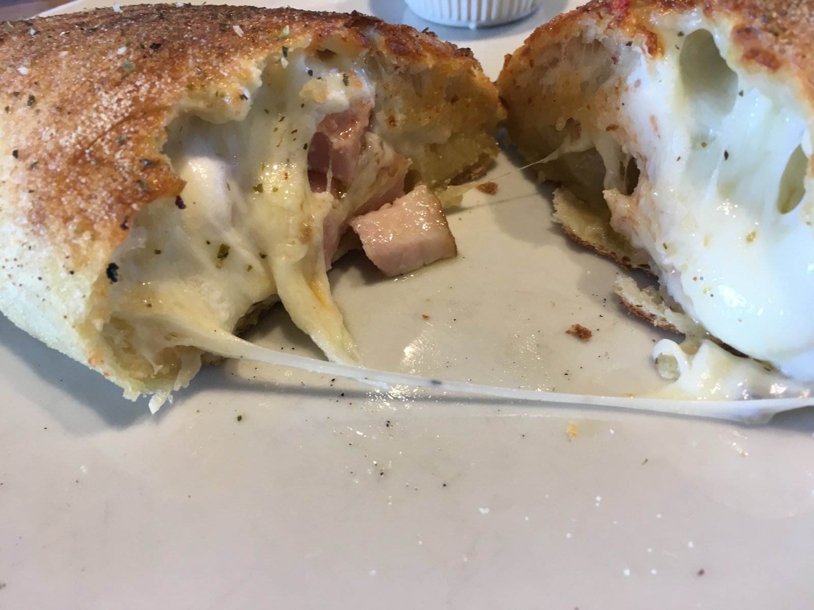 I went back in line and ordered a smoked ham calzone ($9.95)