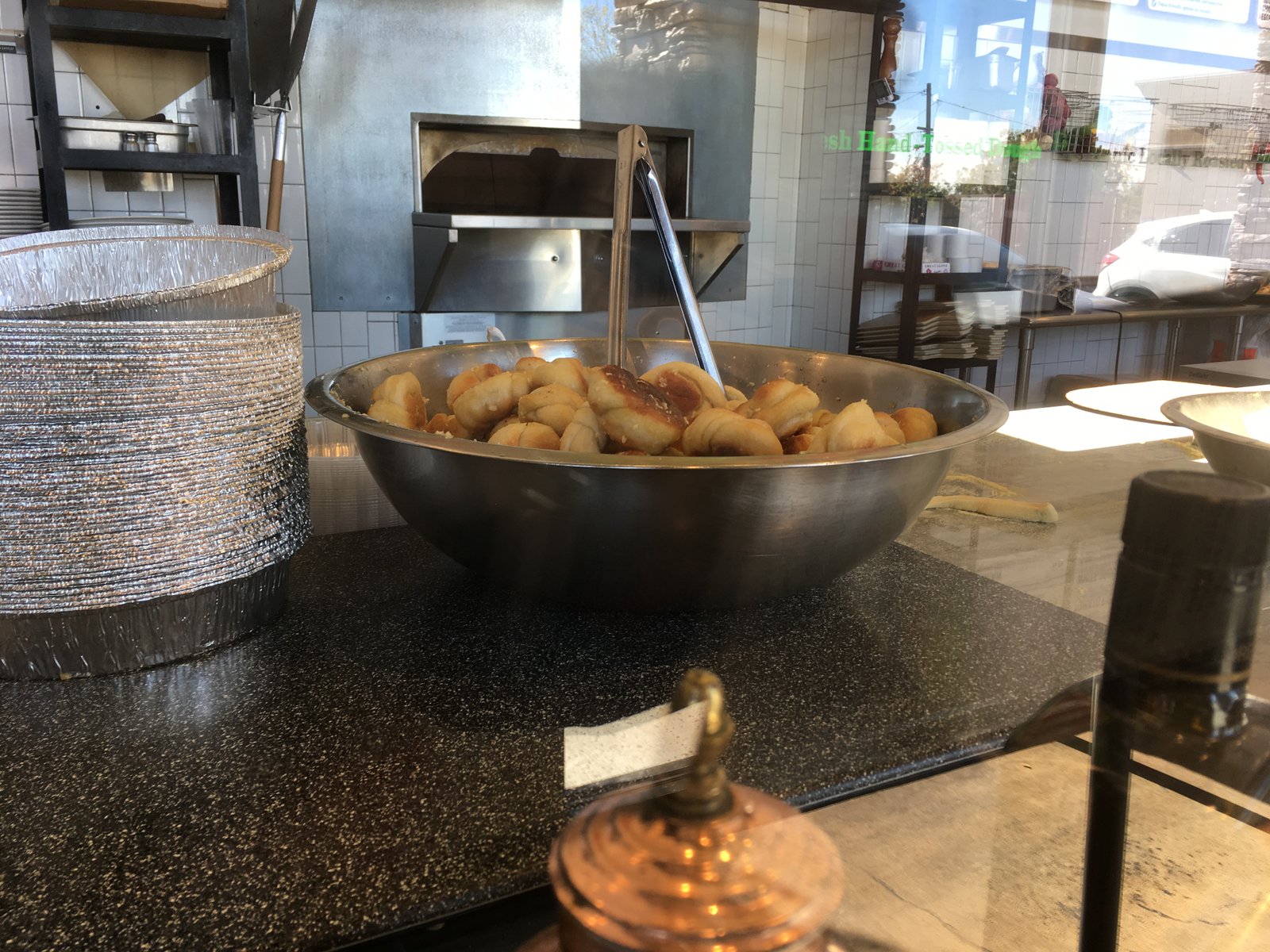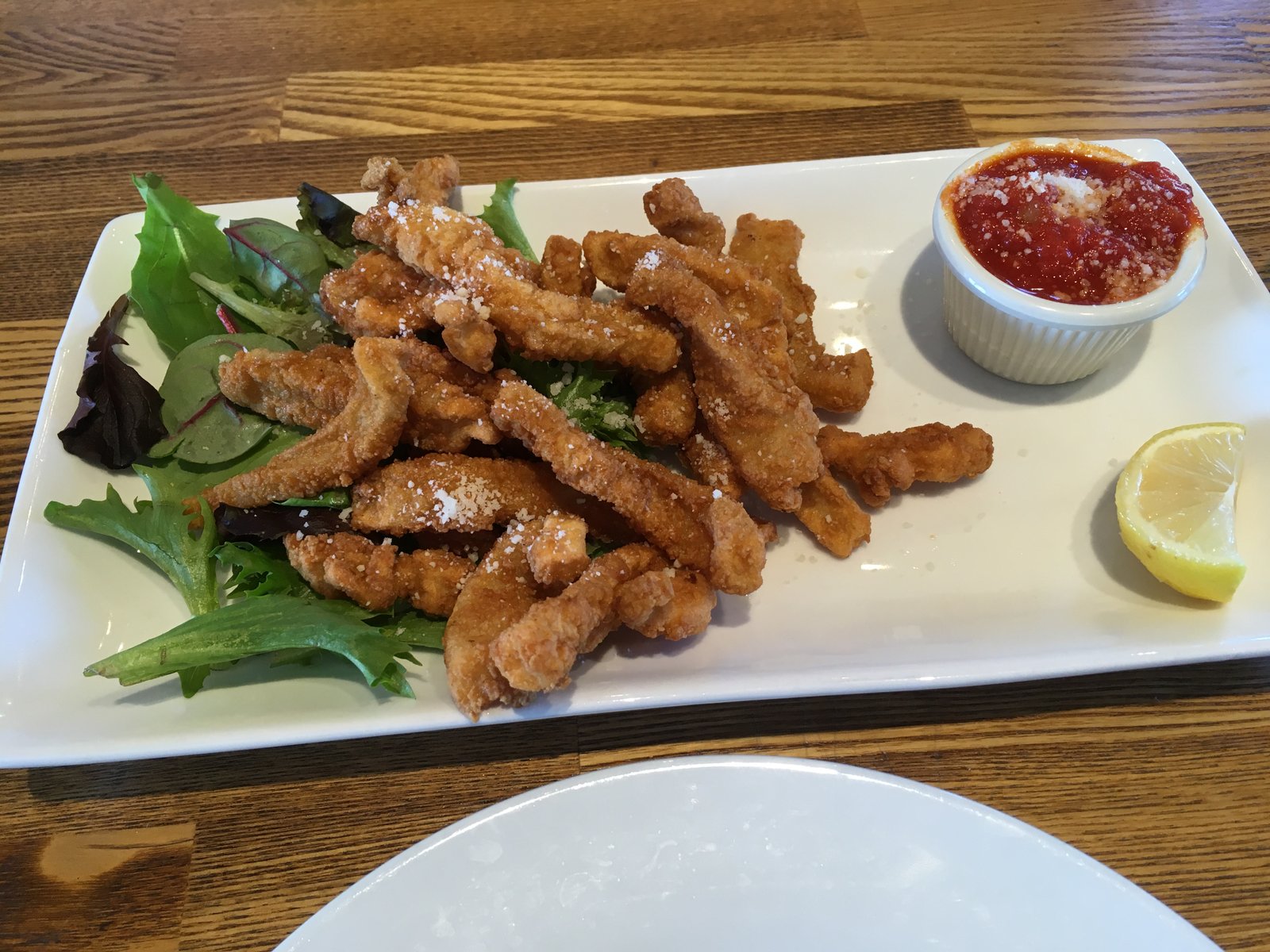 Mozzarella and ricotta are the cheeses, the wood fired crust had the char that gave the crust flavor and crunch. The cheeses, the bit of marinara sauce…this was wonderful. We had a bite in the restaurant and took the rest home for dinner. A great day of meals.