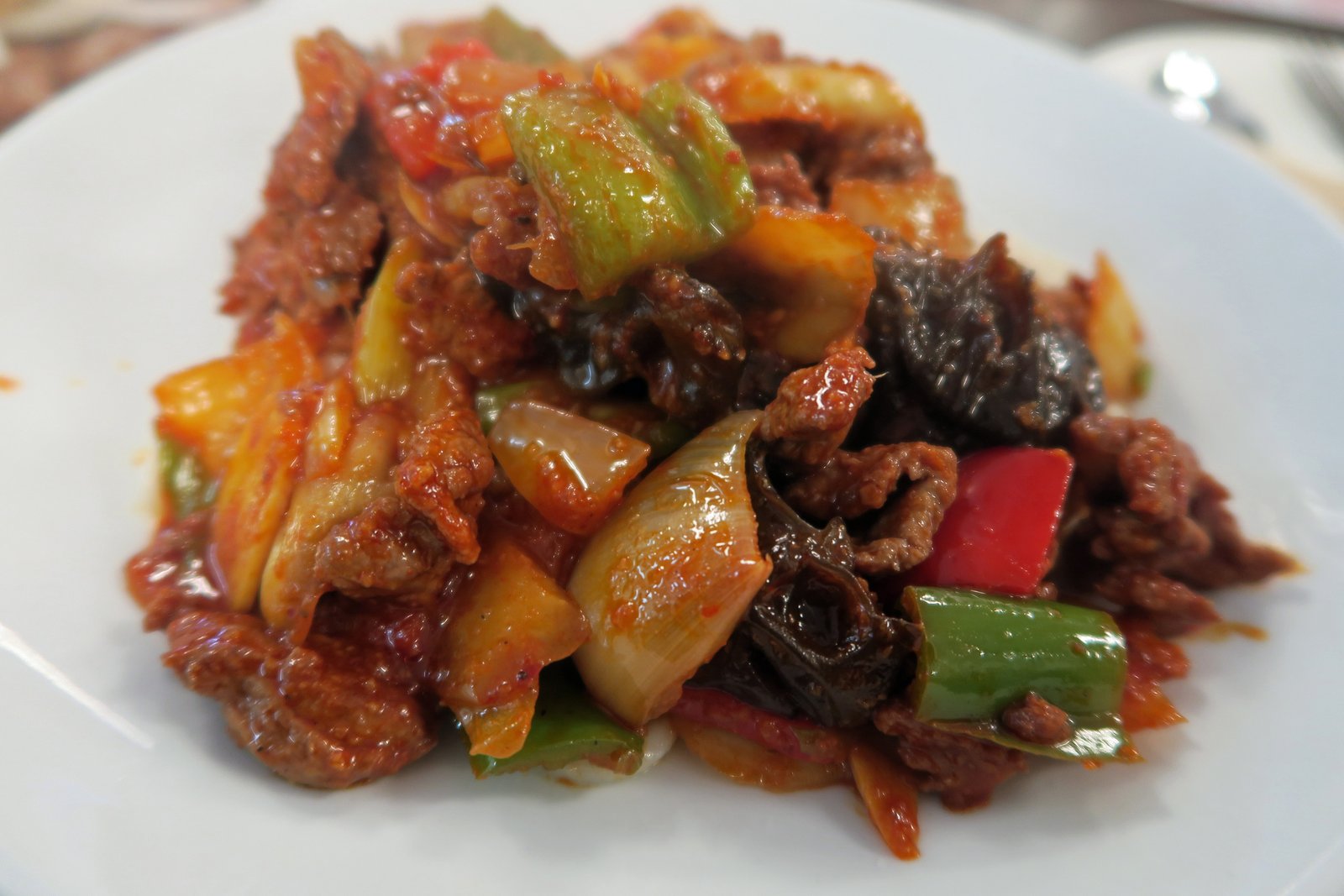 The noodles were wonderfully prepared; such nice pull, just the right amount of "doughiness". Unfortunately, the lamb was really tough and dry and the stir fry really lacked flavor…I'd expected some tanginess; but this was so bland. It really could have used salt, white pepper, and that all important Uyghur flavor enhancer, cumin.