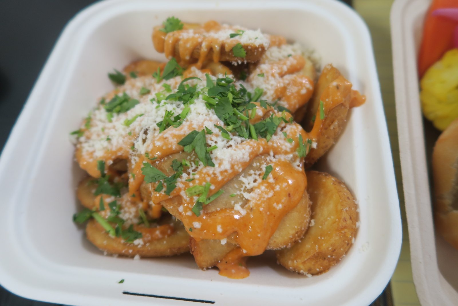 These potatoes were on the dry side and had lost any crunch. While the harissa mayo had a tiny (I wish it was more spicy) bit of zip, it did add to the flavor, making this rather rich. This was also on the salty side.