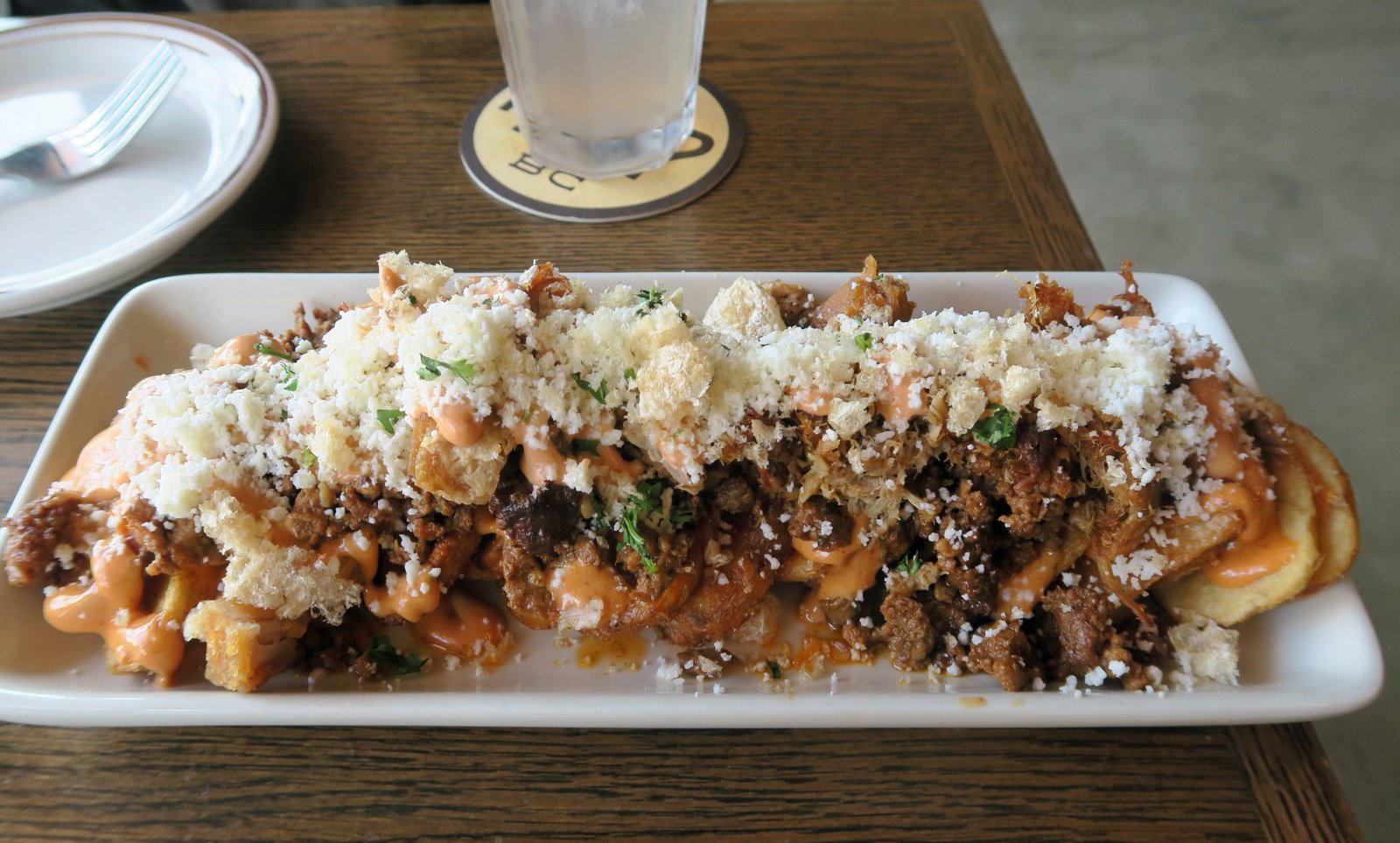 Unlike the "fries" this wasn't over sauced and there wasn't too much cheese, just a touch of light spice and milkiness. The carnitas had a mild crunchiness to them and combined with the pork belly, made a nice, porky, "one-two" punch. The breakfast potatoes were typical, but at least weren't over-cooked or dry. The eggs were over done for my taste and the yolks were hard. I could barely finish the eggs and about half of the rest.