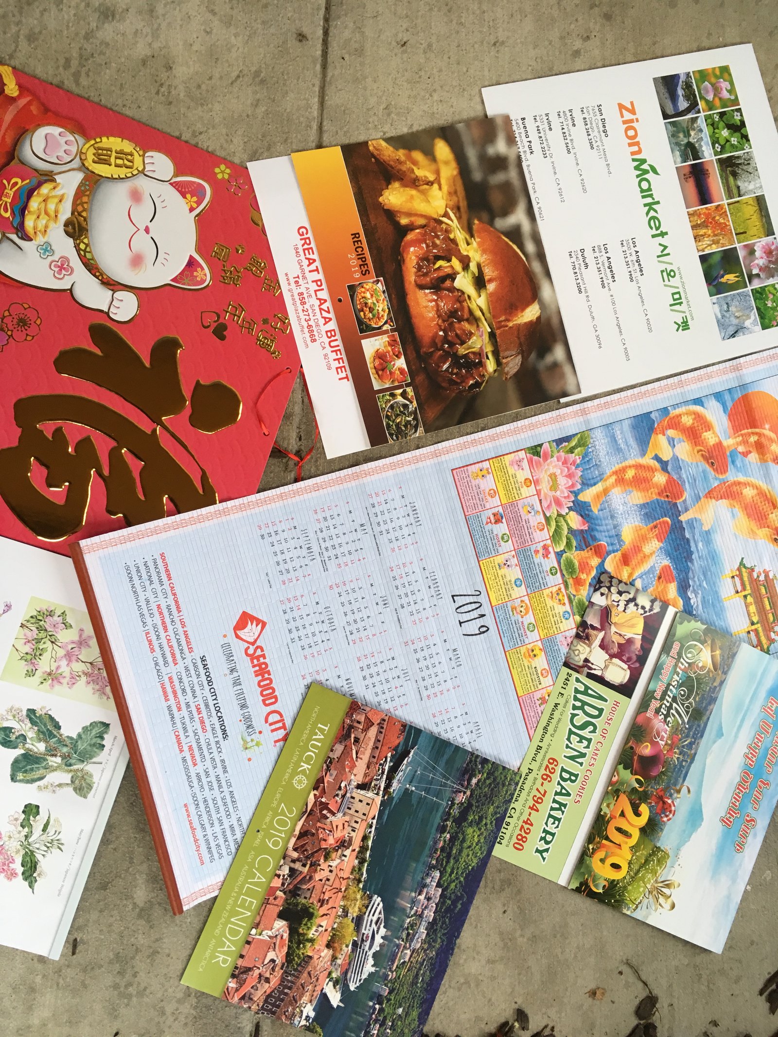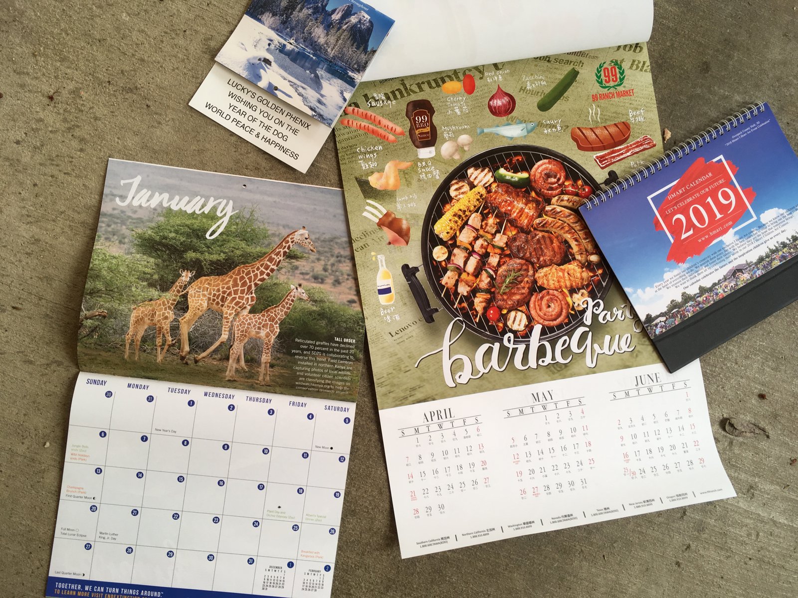 Happy New Year and thank you for the good wishes via Kirk's post. It's a time of finishing up the holiday season, rearranging and writing '2019' on paperwork. Part of my regular activity consists of acquiring new calendars from various businesses and sometimes posting about them with photos. This year is the same. It started out slow; there were four Saturdays before Christmas in December 2018. A lot of businesses waited to do their giveaways with a purchase.
