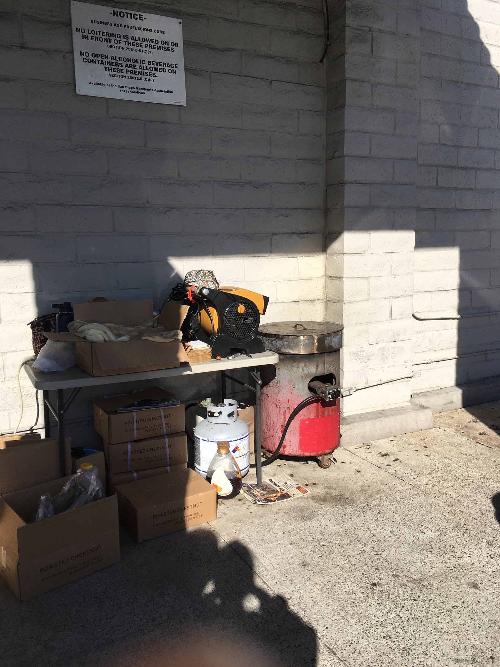 Another annual tradition is to take advantage of the freshly roasted chestnuts from in front of Lucky Seafood Market (which ran out of calendars before we got one). The little tent covering the chestnut roaster has disappeared, but the roaster, attached to a propane tank is right there at the door. (Apologies for the thumbnails, something happened with the phone update and the large size shows up sideways, but clicking on these enlarges and makes them appear upright…I don't know…).