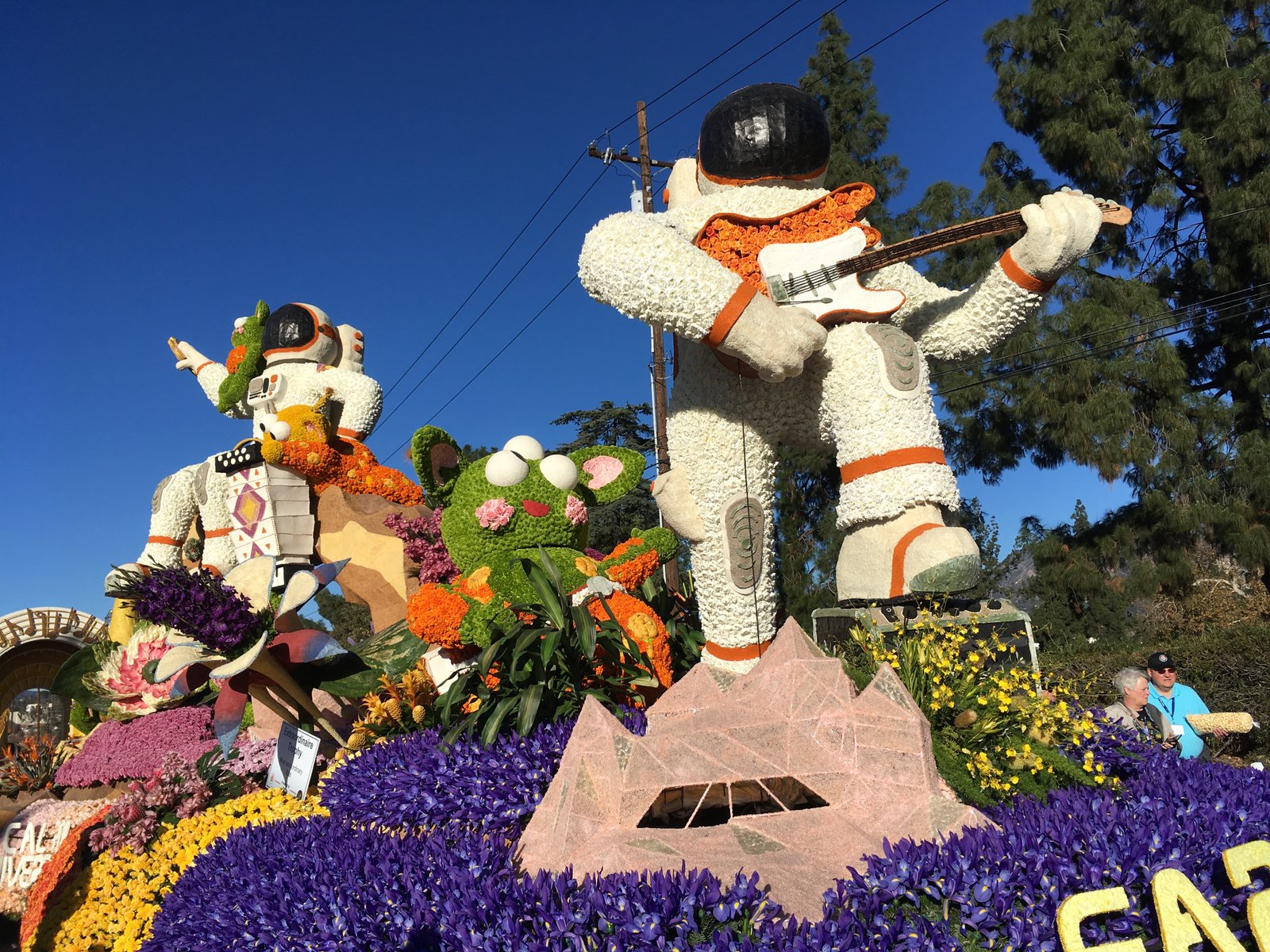 The day began with an early wake up and drive North to Pasadena, where the 130th Tournament of Roses Rose Parade showcase of floats were lined up end-to-end on Sierra Madre Avenue, at the end of the five mile parade route. The walk along the floats is 2.5 miles and it's not all flat. There were 45 floats, along with Equestrian Units and Marching bands, for a total of 91 Units in the Parade. (I do have photos of each of the floats, many photos. If there is one you would like to see, I can put it at the end of this post). For now, here are some details of some of the floats which you might have missed as they ran across your television screen in less than 30 seconds. "Books Keep Us on Our Toes", by The UPS Store featured this ostrich in her ballet shoes and won the Sweepstakes Trophy for most beautiful entry encompassing float design, floral presentation and entertainment.