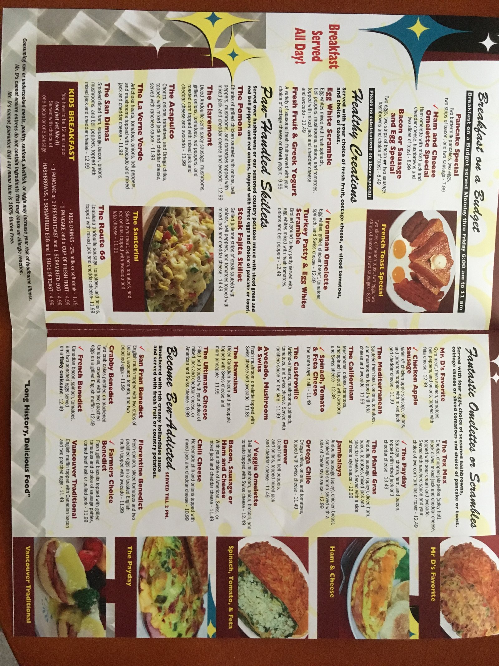 Mr. D's Diner 401 E. Foothill Blvd. Pomona, CA (909)938-4222 Open daily 6 a.m.-10 p.m. website