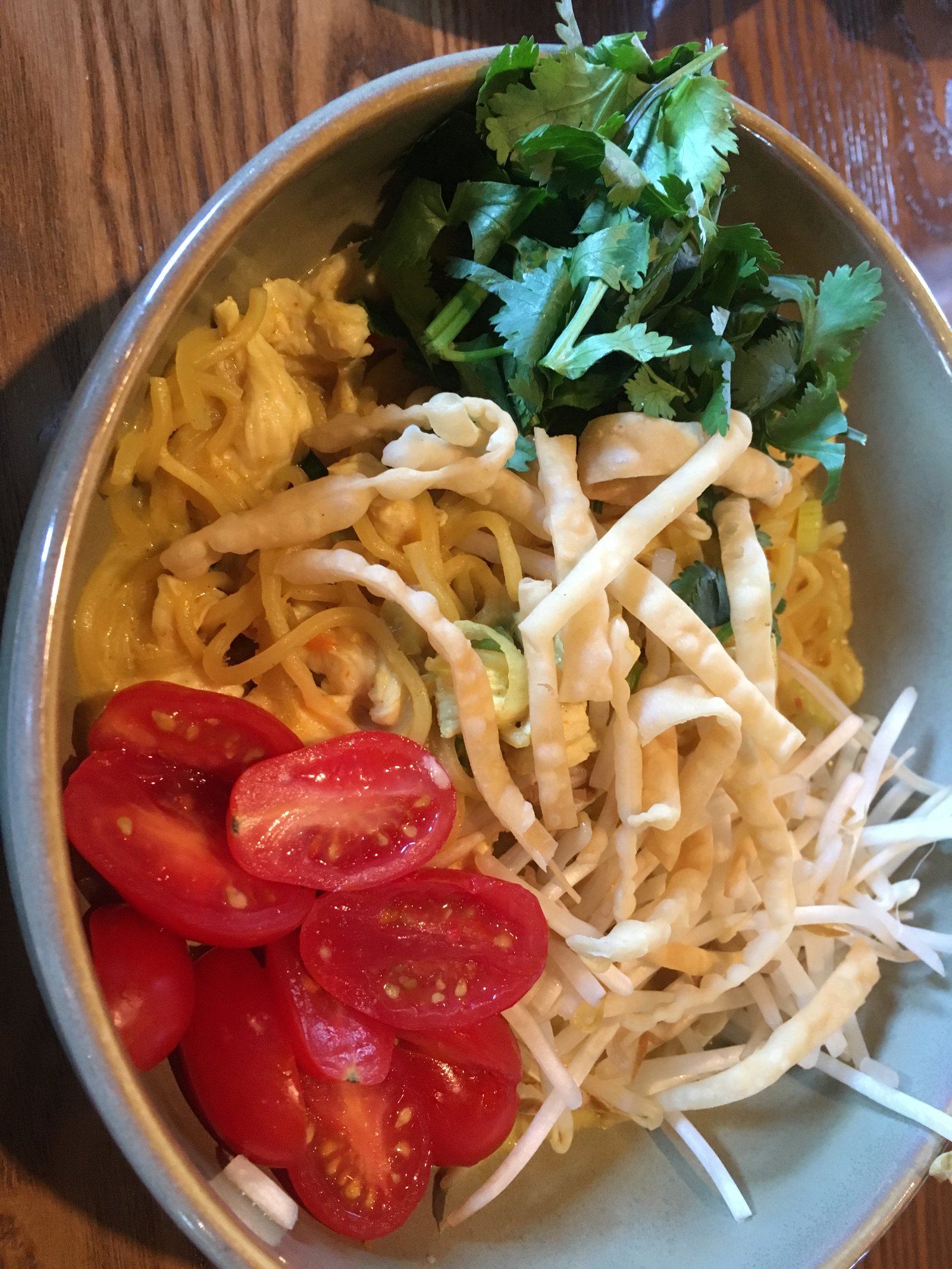 From the 'Lunch' section of the menu, we decided to share the Chiang Mai Noodle Bowl ($11.95). Egg noodles and marinated chicken in a coconut curry broth, some crispy wonton strips with fresh grape tomatoes and flat leaf parsley. Once all mixed, this was also a great mix of flavor and texture. Quite satisfying.