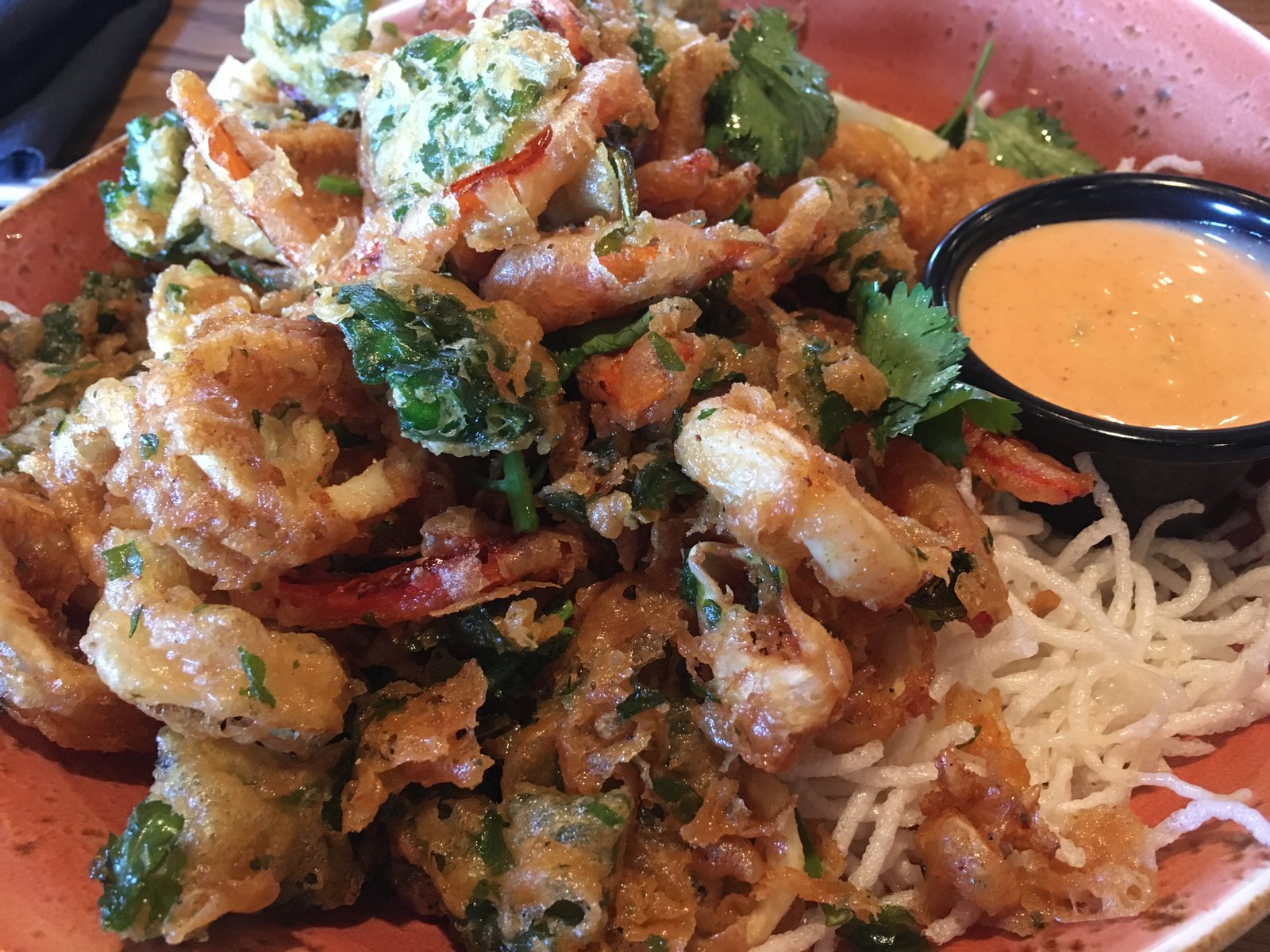 Also from the 'Street Fare' section: Tempura Shrimp and Vegetables ($11.95). Lightly battered plump, sweet shrimp, bell peppers spinach and carrots served with a Sriracha/sweet aioli. This was also quite good.