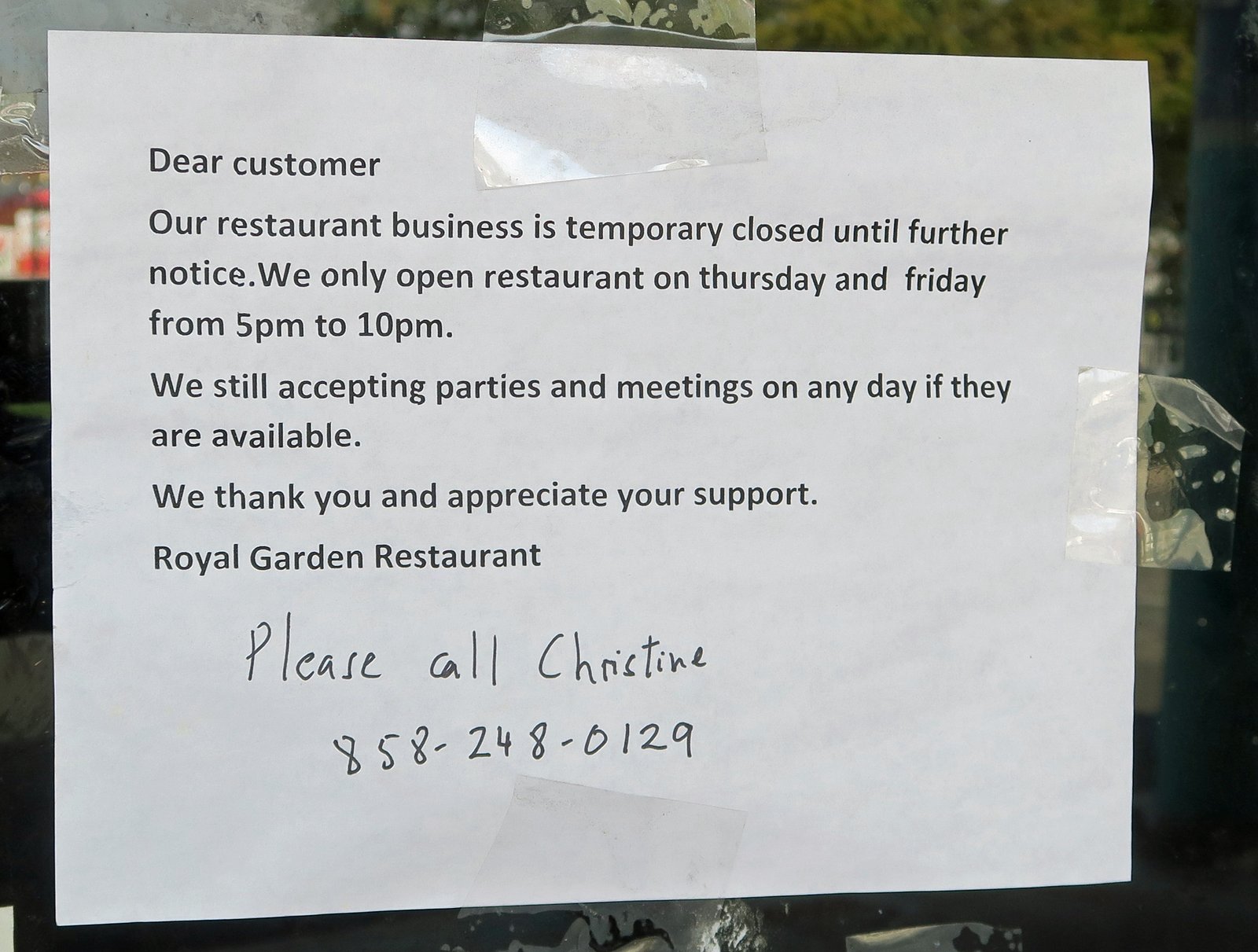 Royal Garden Has Limited Hours: