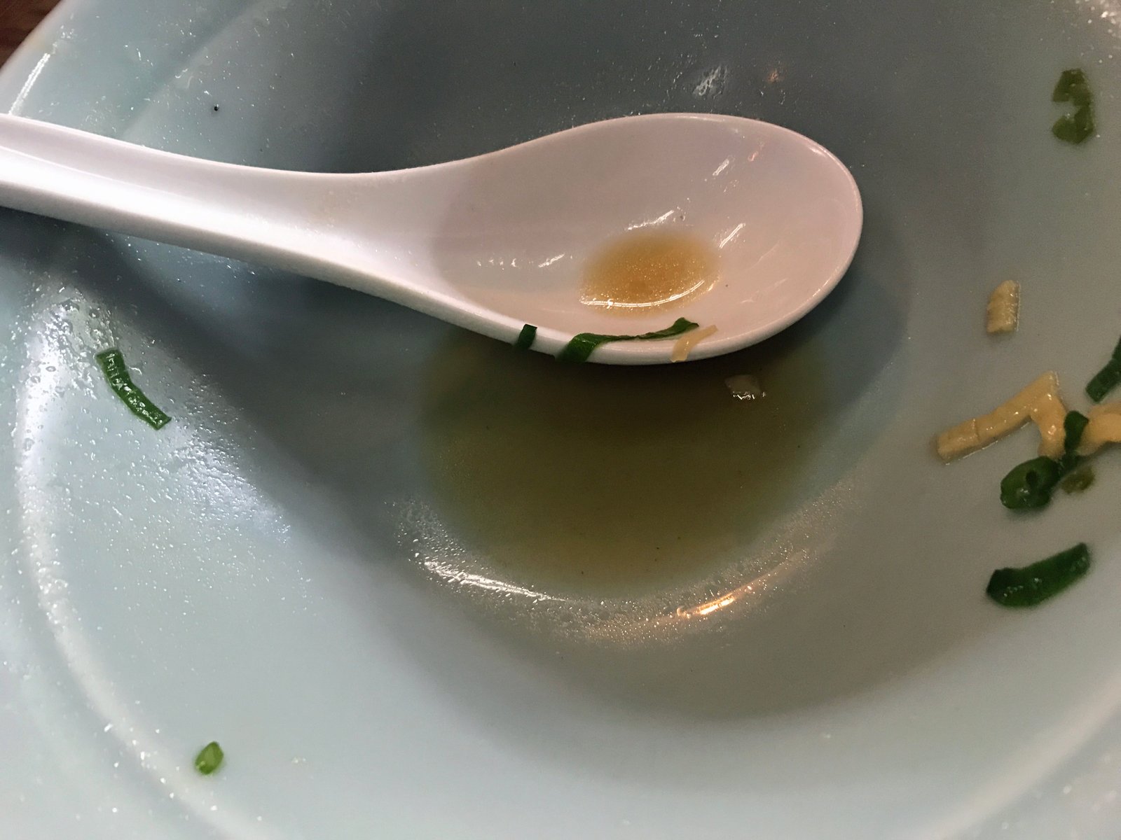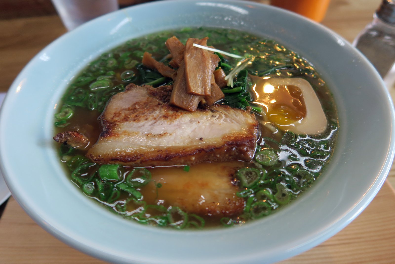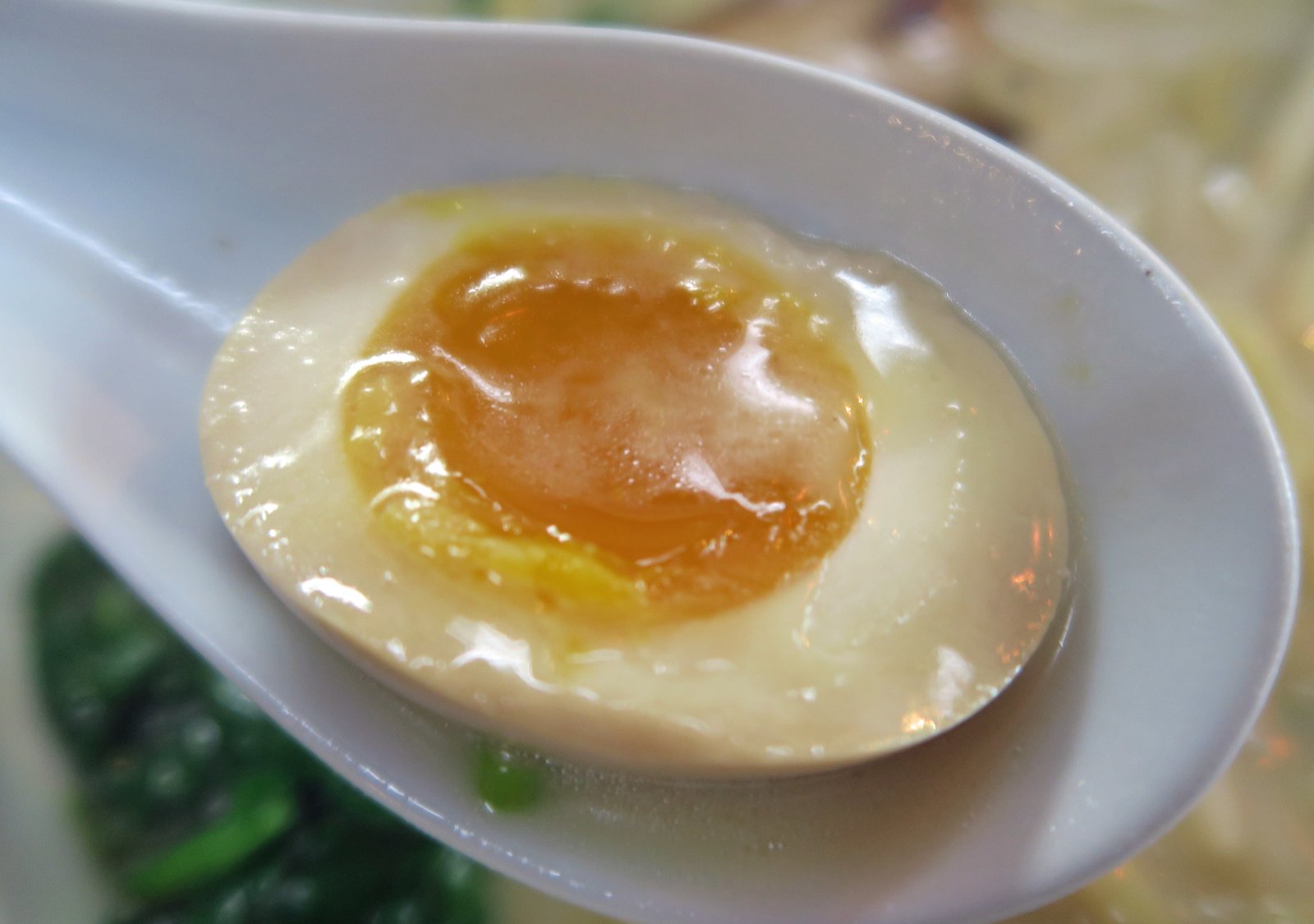 The egg was nicely done; and "gasp", not cold! Soft, with a good soy sauce flavor; it was quite good. The Chashu, while being a bit milder than I preferred was tender, and actually had some nice soy based porkiness. The blanched spinach added a nice slight bitterness to things.