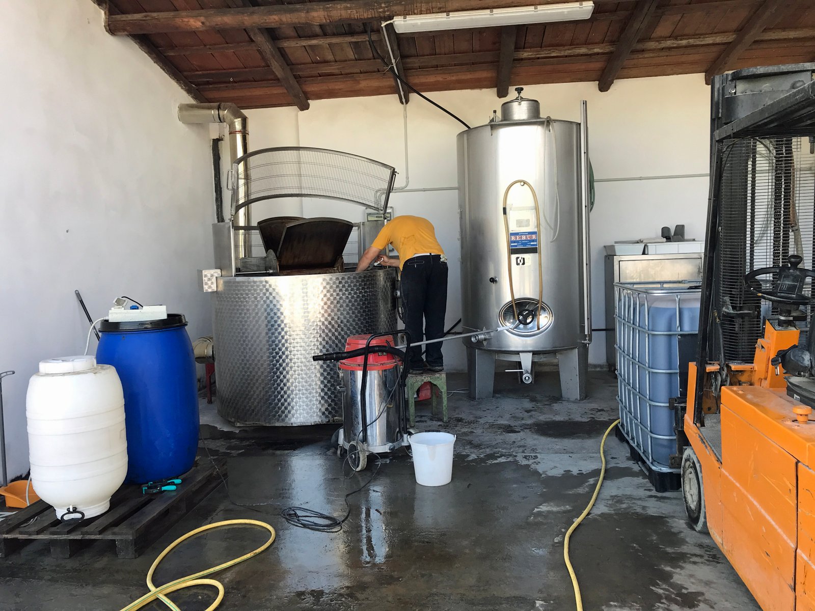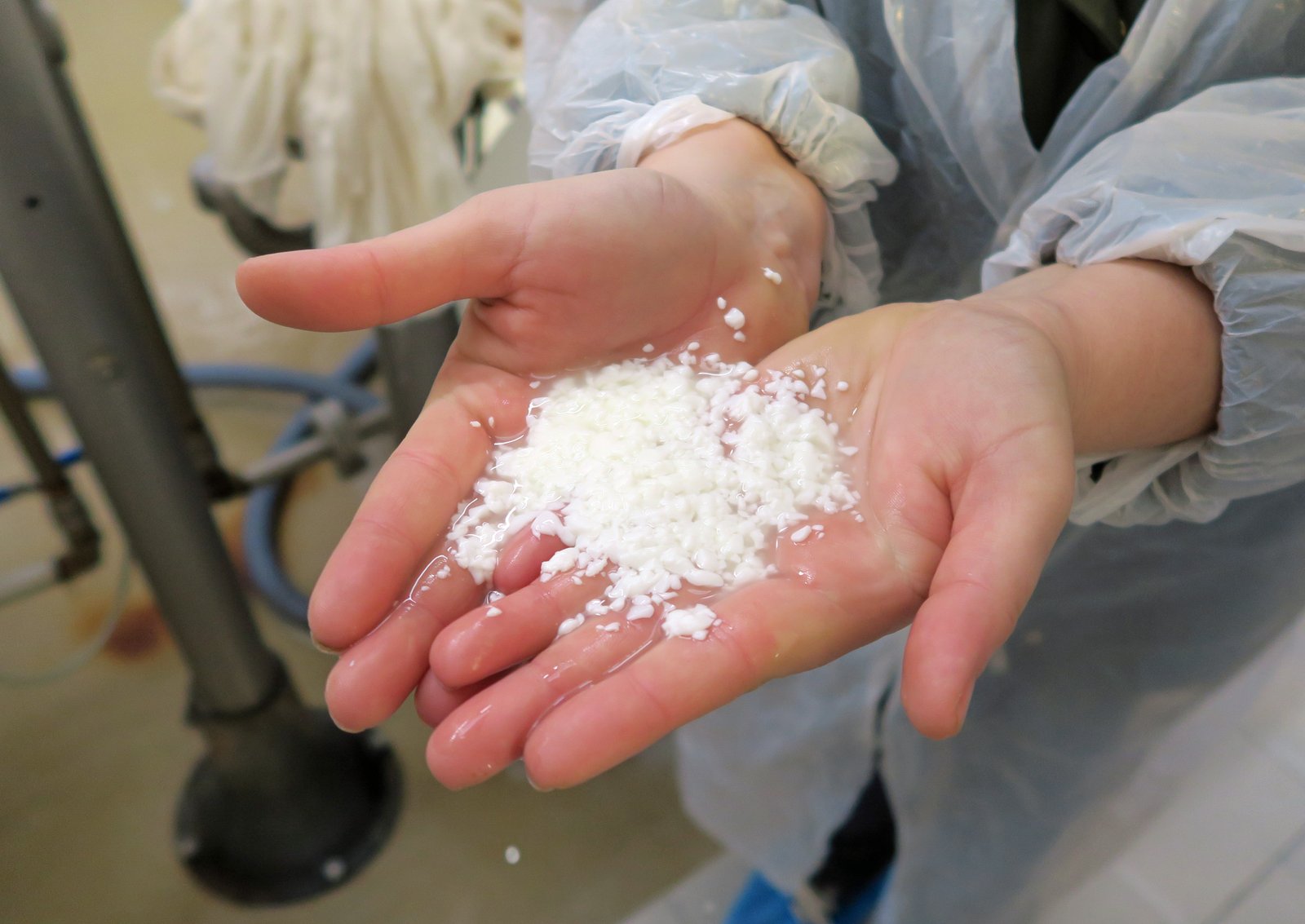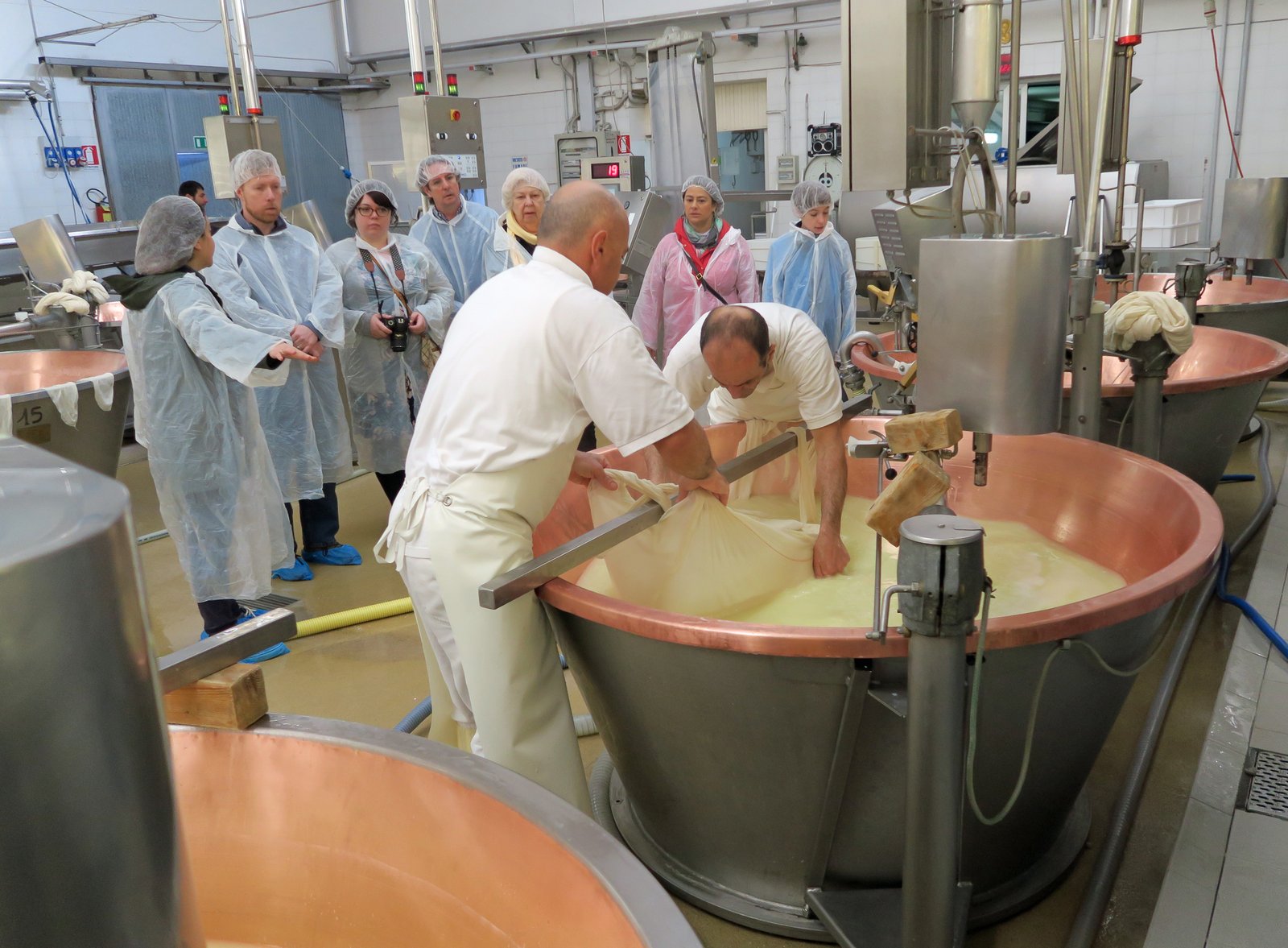 Each vat holds 1100 liters; that's 290 gallons of milk. From which the curds makes…..