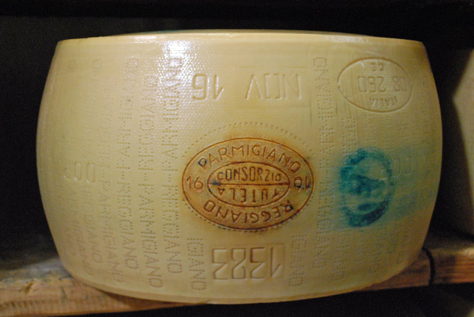 Then it's time for the aging process. After twelve months an inspector from the official agency called the Consorzio del Formaggio Parmigiano-Reggiano will inspect the wheels. Those that….ahem, don't "cut the cheese" have all identifying marks cut off. Those that make it get branded with the seal of the PDO (Protected Designation of Origin).