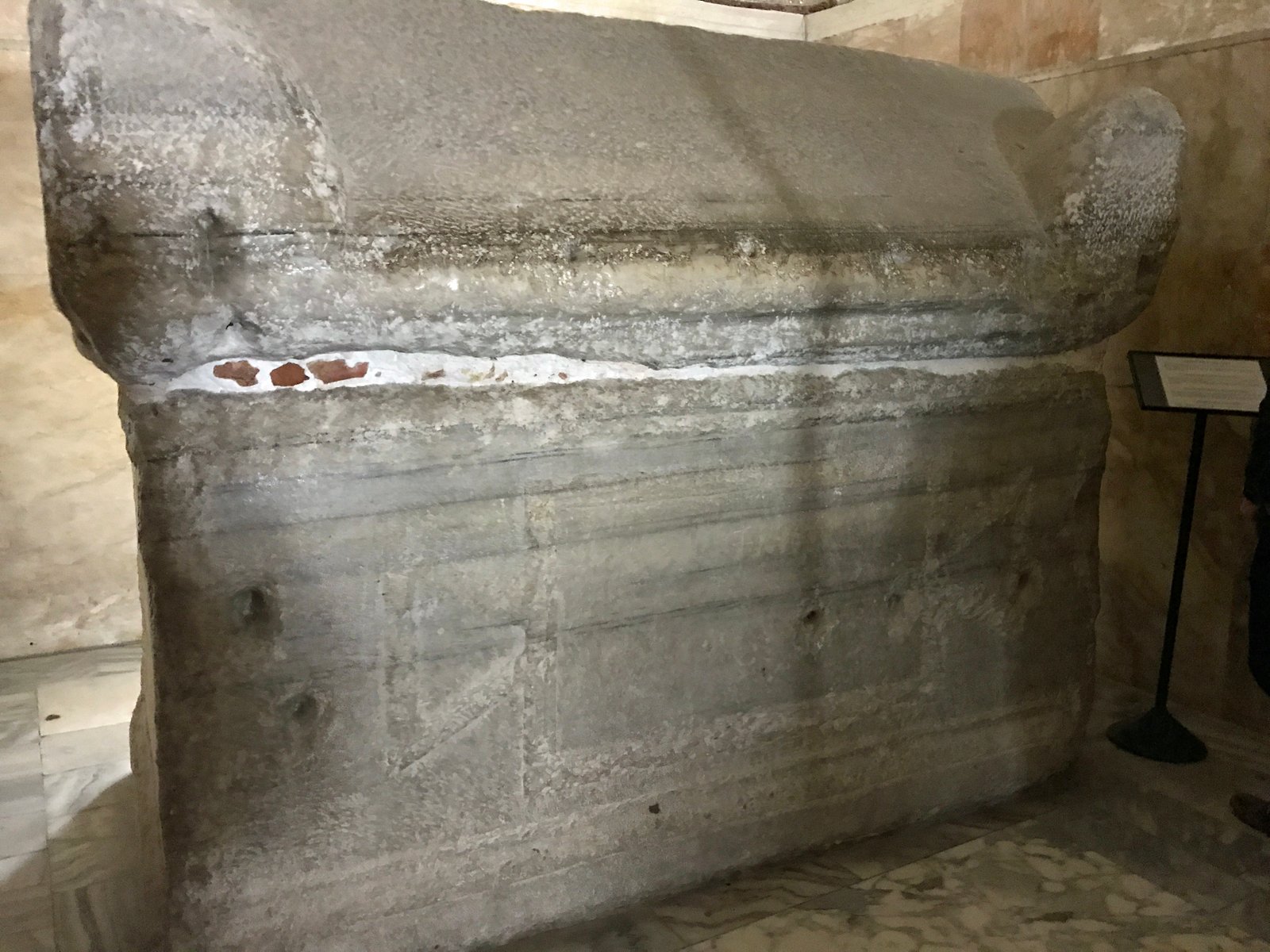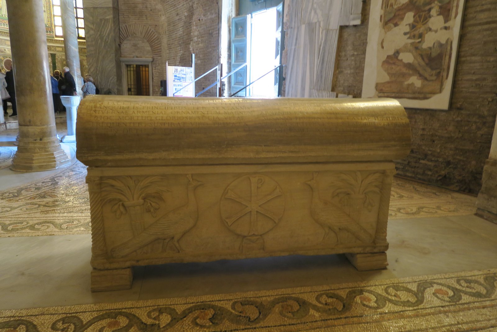 Across the courtyard is the Mausoleum of Galla Placidia, named after the daughter of Theodosius I. There are three sarcophagi in the structure; it is said that these are of Galla Placidia, who is said to have been placed in sitting position, Galla's son, Valentinian III is to her right, and to her left is that of Emporer Constantius III, her husband. Though because of study and dating, it is no longer thought to be so.