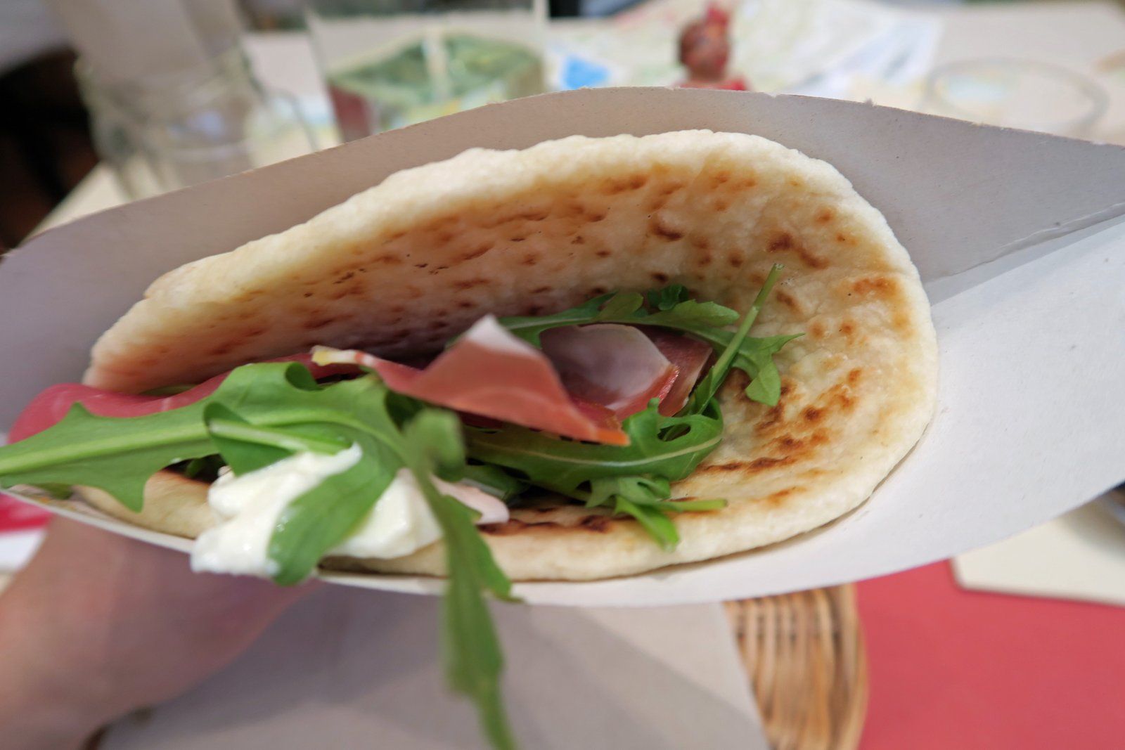 the main reason we stopped is because the place served a small menu for lunch that featured Piadine. We'd been wanting to try an Italian version since having on Malta and I knew that this flatbread is traditionally from this region.
