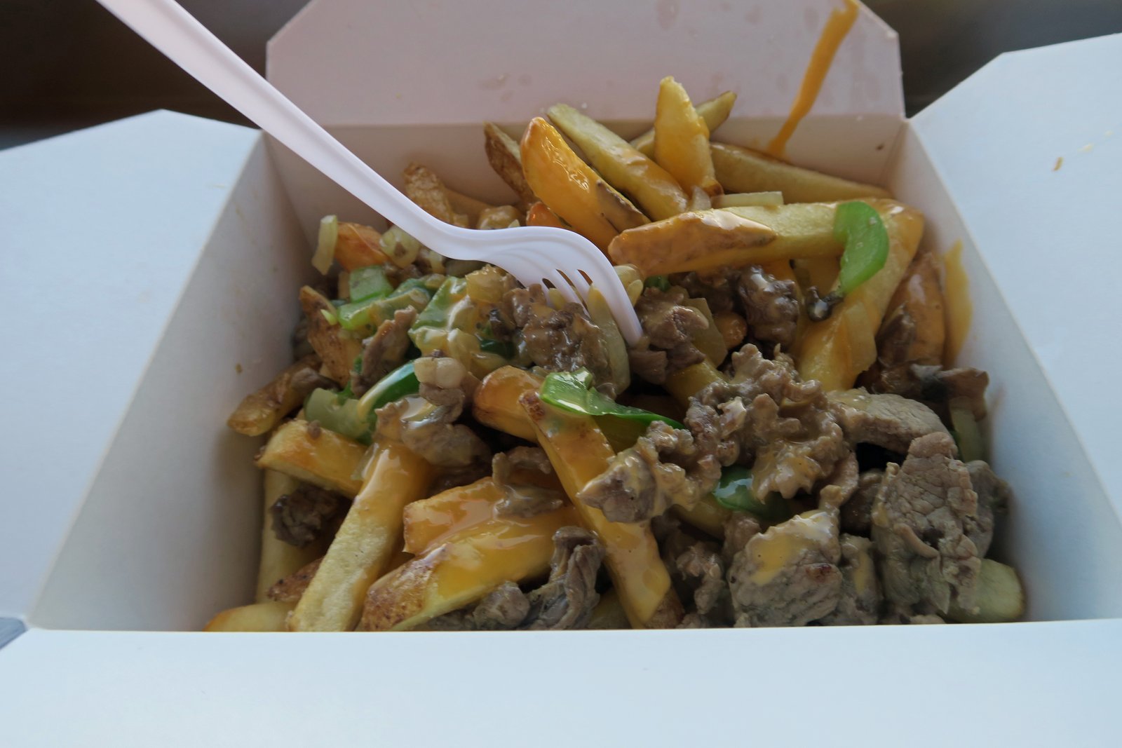 The rib eye was tender, though there weren't too much onions, mushrooms, and peppers. I enjoyed the nicely fried, potato-ey fries, which were super hot. I'm thinking you gotta eat this hot. The top layer was nice, not too much "Whiz" and the fries still had some crispness to it. But "crunch time" diminished as you worked you way to the bottom….man they sure use a lot of "Whiz". I just couldn't finish this as it got too salty near the end and I was stuffed.