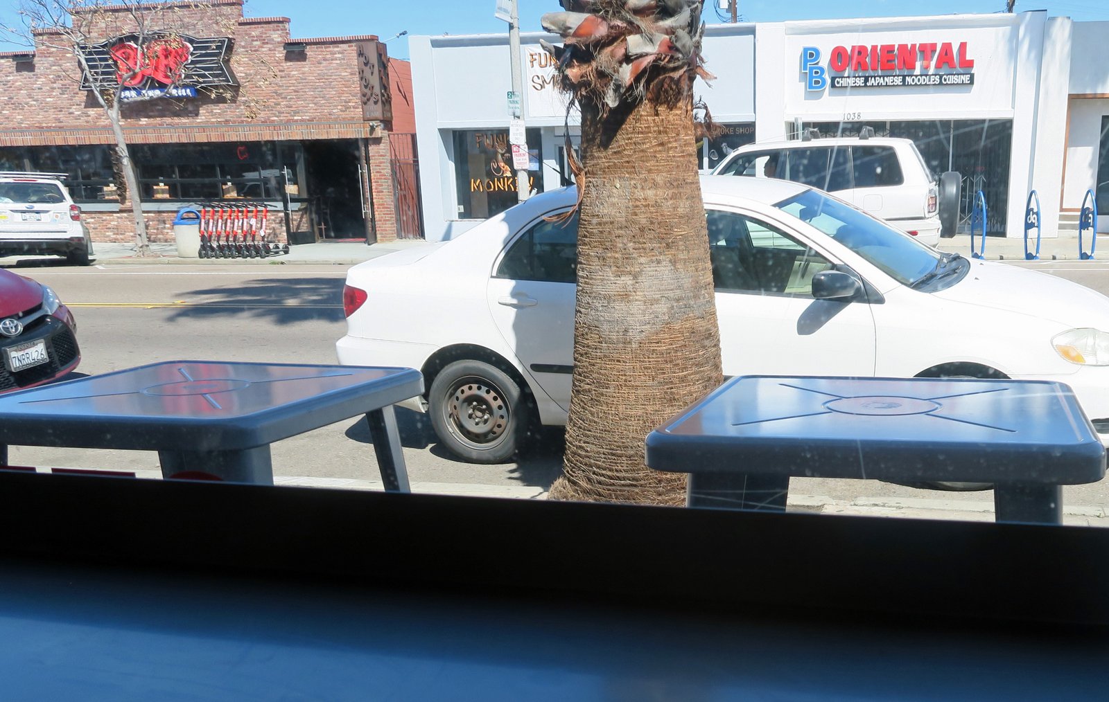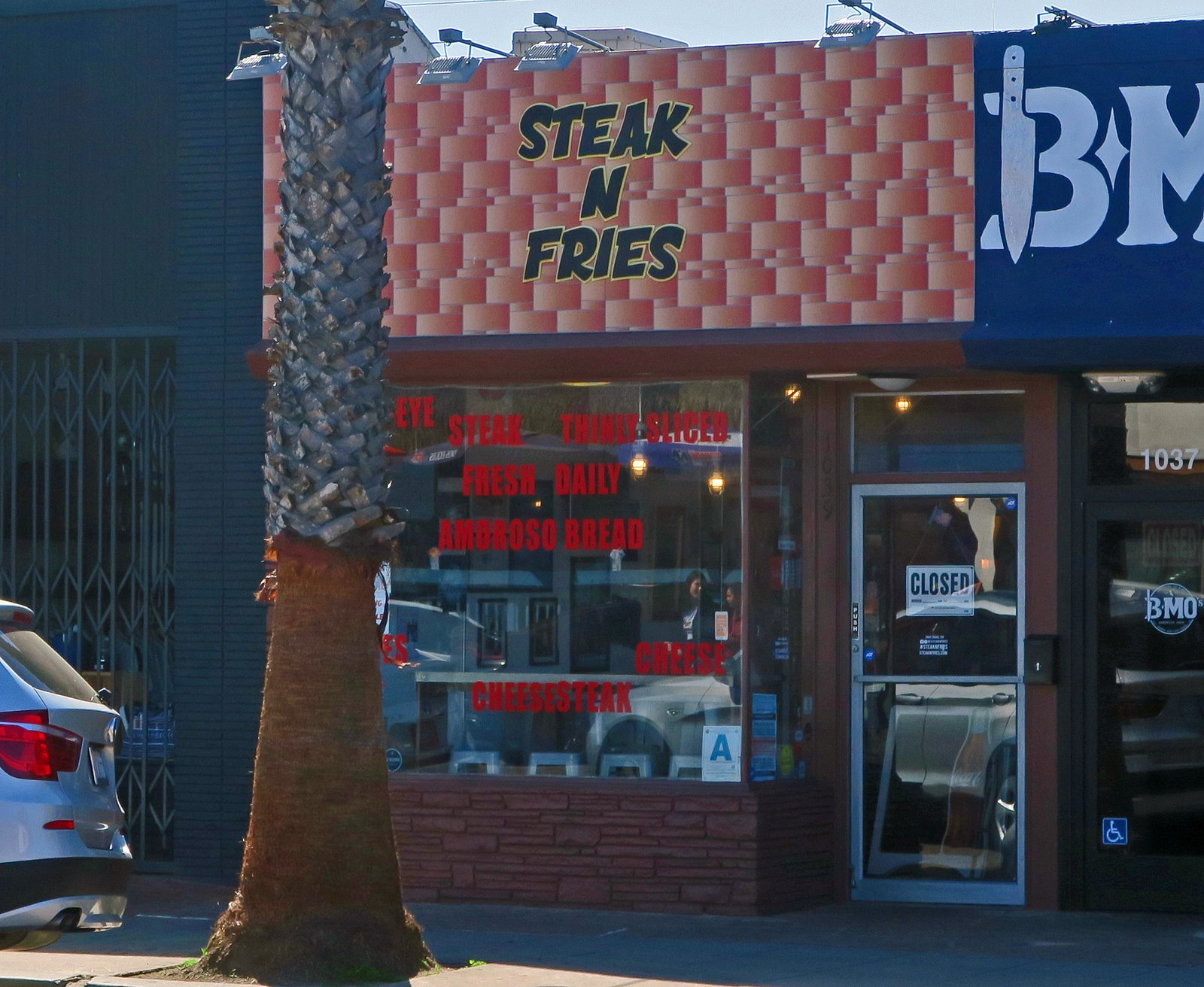 As always, I returned for another visit. But with the limited menu, what to get? Well, I decided on the namesake "Steak n Fries" ($7) with onions, peppers, and mushrooms. And took a seat and looked out onto Garnet and "PB Oriental"?