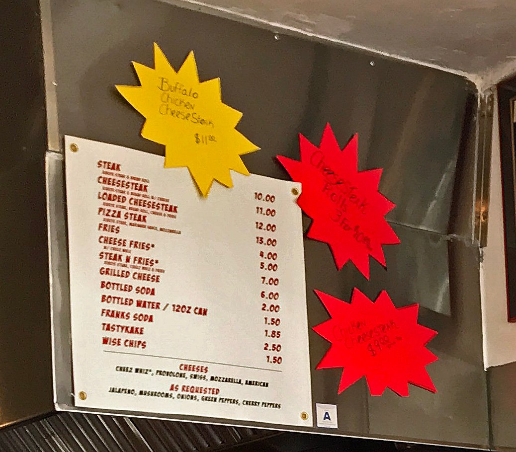Entering this tiny little shop, it's basically one tiny two top, a counter with five stools, and two small two tops outside, I was warmly greeted by a gentleman who I assume is the owner, "Angel". He came out from behind the counter, shook my hand, and went over the menu. In short, you got cheesesteaks, and what they call Steak N Fries…..fries topped with the beef used for the sandwiches and a rather lonely grilled cheese. On the good side; along with your choice of cheese, you can request peppers, onions, mushrooms, and the like at no extra charge.