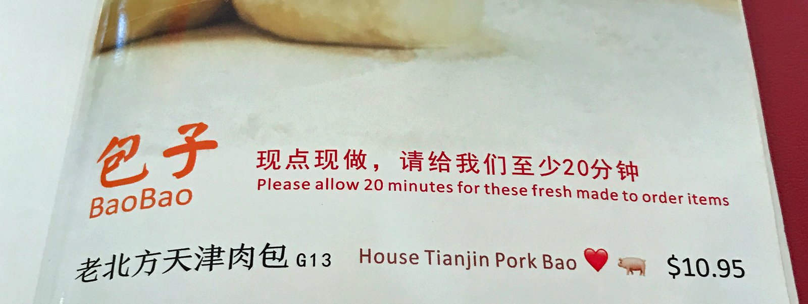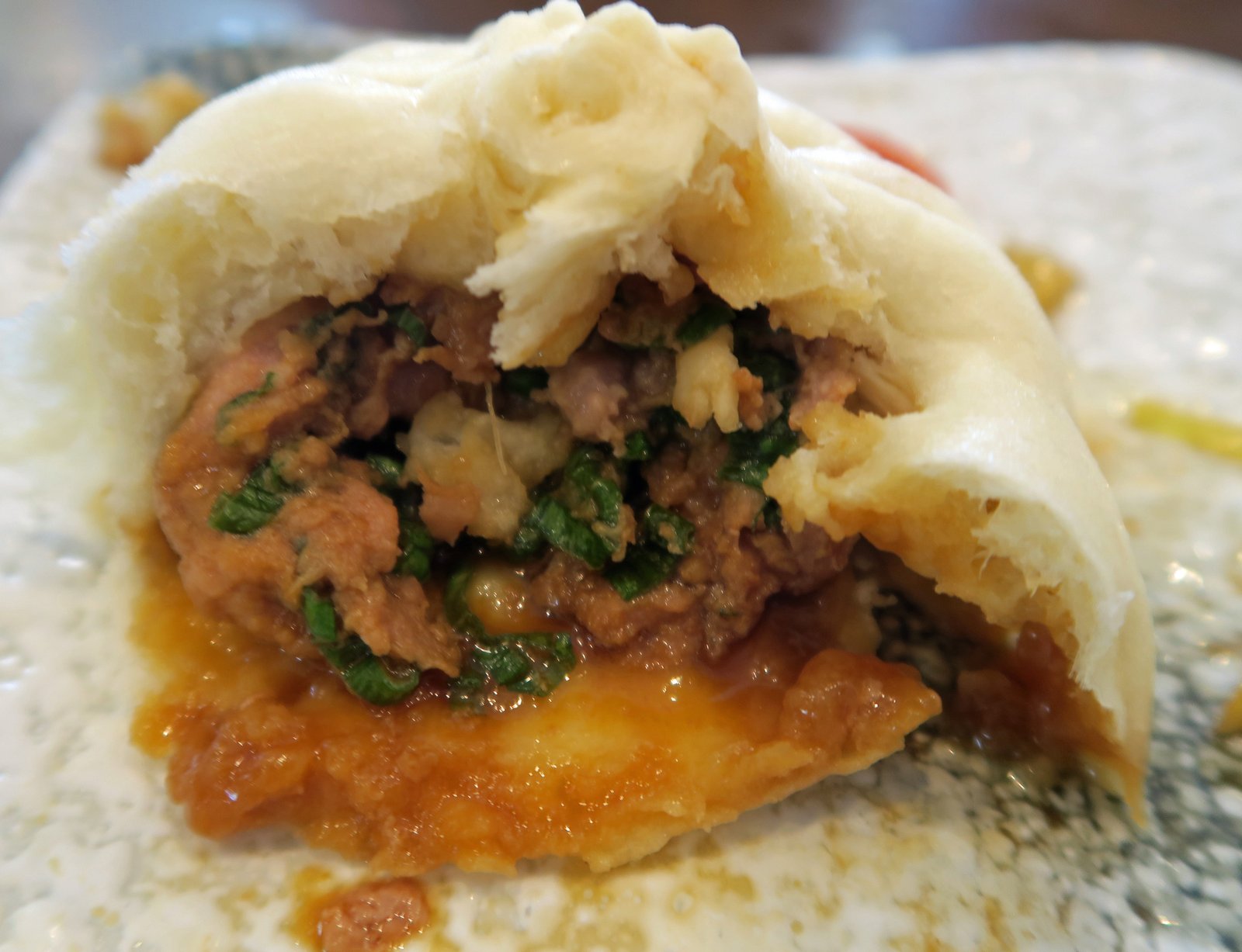 And while I wouldn't consider this to be traditional Tianjin Guo Bu Li Baozi ("stuffed buns that even dogs would not eat") it was quite good. The bun, while not overly yeasty in fragrance was light and tender. Both the filling and dough was a bit sweeter than what the Missus's "Shandong – Beijing" palate enjoys, but we quickly found that a drizzle of black vinegar really balanced things out and even added another dimension to the porky goodness of the filling. So, even though I wouldn't consider these to be close to traditional Tianjin style Baozi, I enjoyed them. It was prepared fresh, both the dough and fillings were light, and the black vinegar worked magic in balancing the flavors out. And we could only finish five…..