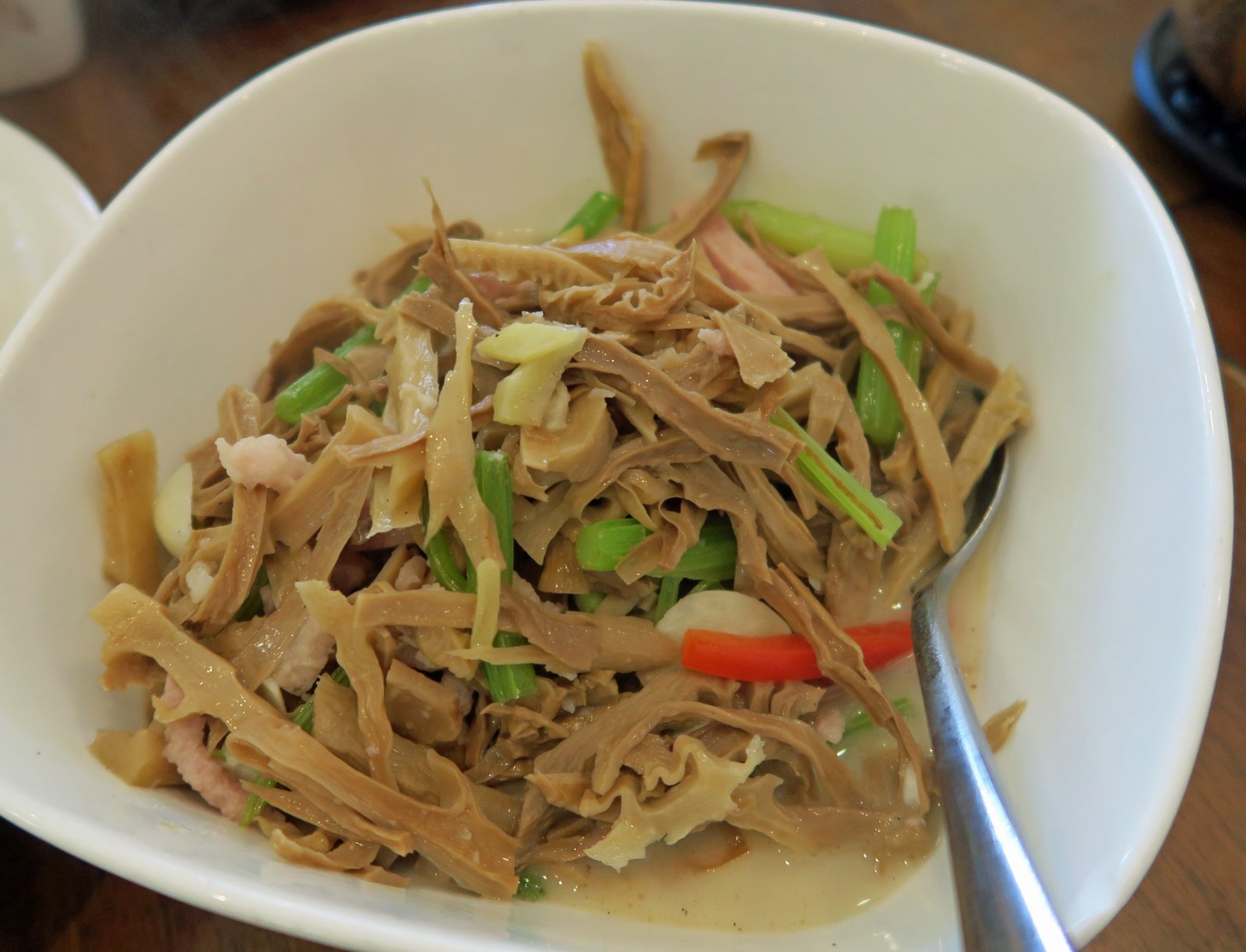 It was the presence of a certain canned meat product….though I'm thinking it wasn't the most popular brand. It actually did well in this as the earthy and crisp bamboo shoots needed some saltiness and more depth. The shredded pork was tender, but didn't really add any flavor. Overall, a bit on the bland side.