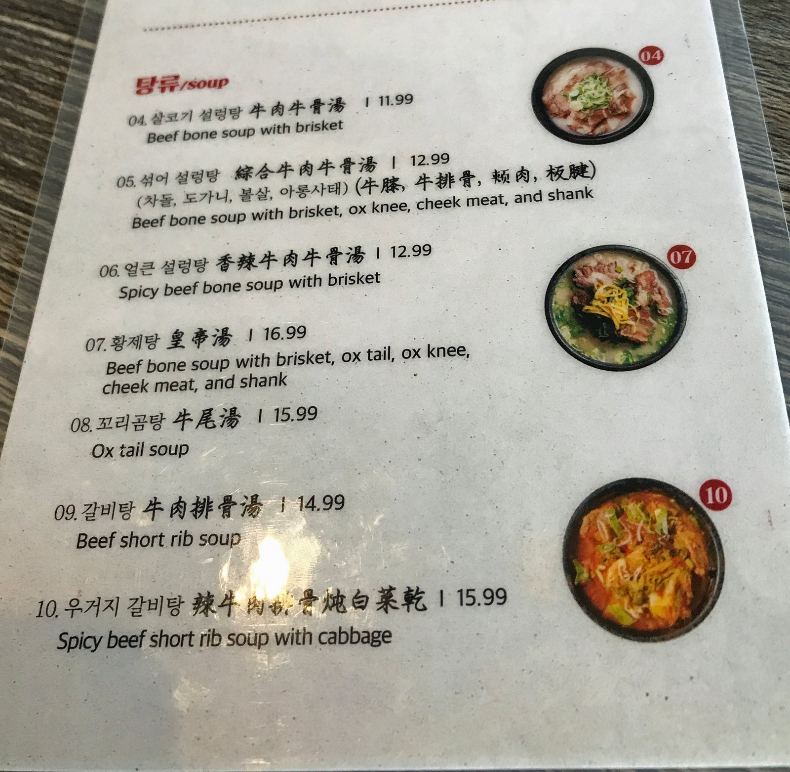 On this visit, we noticed that there have been dishes added to the menu, though the Missus got Her usual Seolleontong. I went with the #7 which had Brisket, OxTail, Ox Knee, Cheek, and Shank.