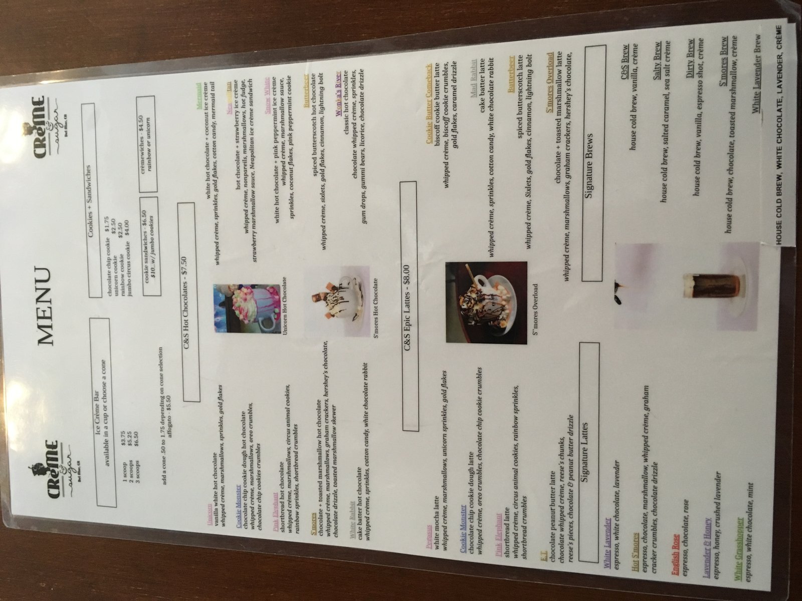 (If you can't enlarge to read the handwritten wall menus, here is the two-sided menu you can grab at the counter). The offerings are "Epic" and pretty much 'County Fair Worthy' (there are some photos on the menu).