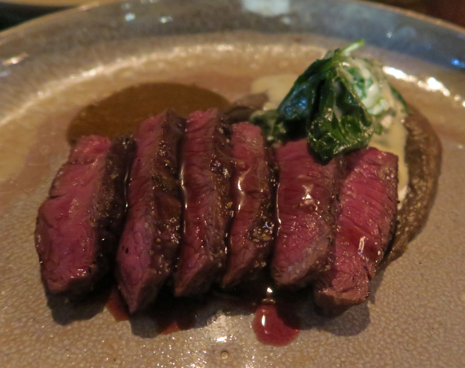 The beef was fork tender, cooked a perfectly medium rare, and had that wonderful, complex, mild gamey-pasture flavor to it. The "mole de olla" sauce had a pleasant, complex, mild sweetness to it. And the spinach and cheese sauce was so delicious as well.