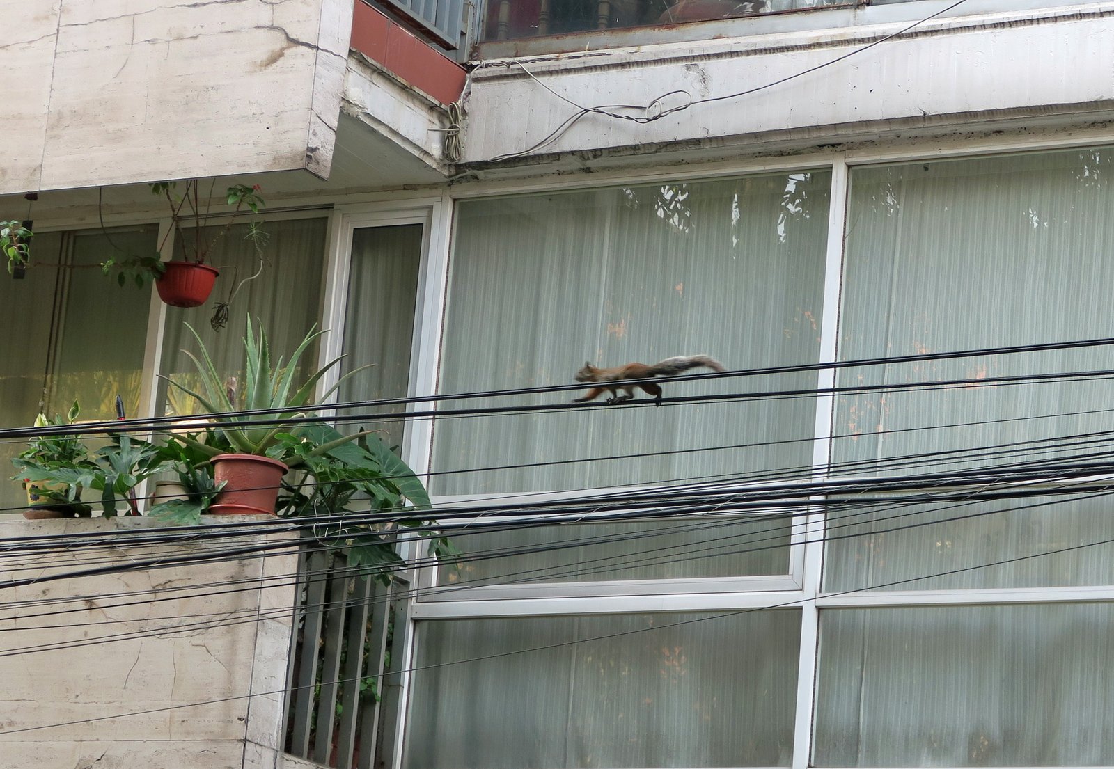 The squirrels doing the "tightrope walk" on powerlines to get from tree to tree.