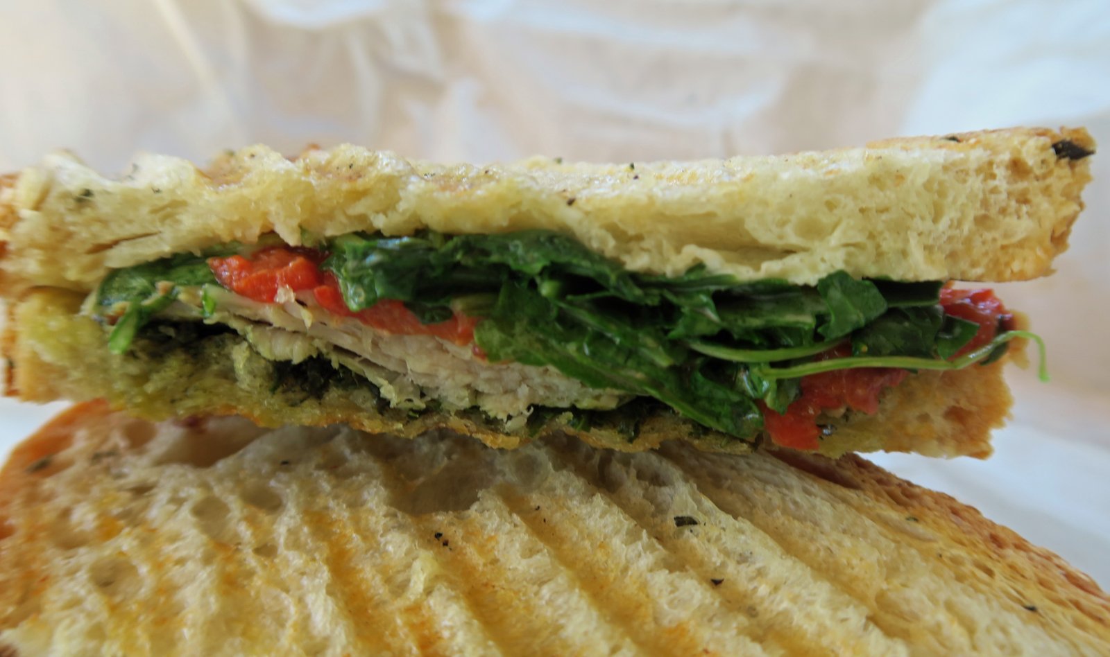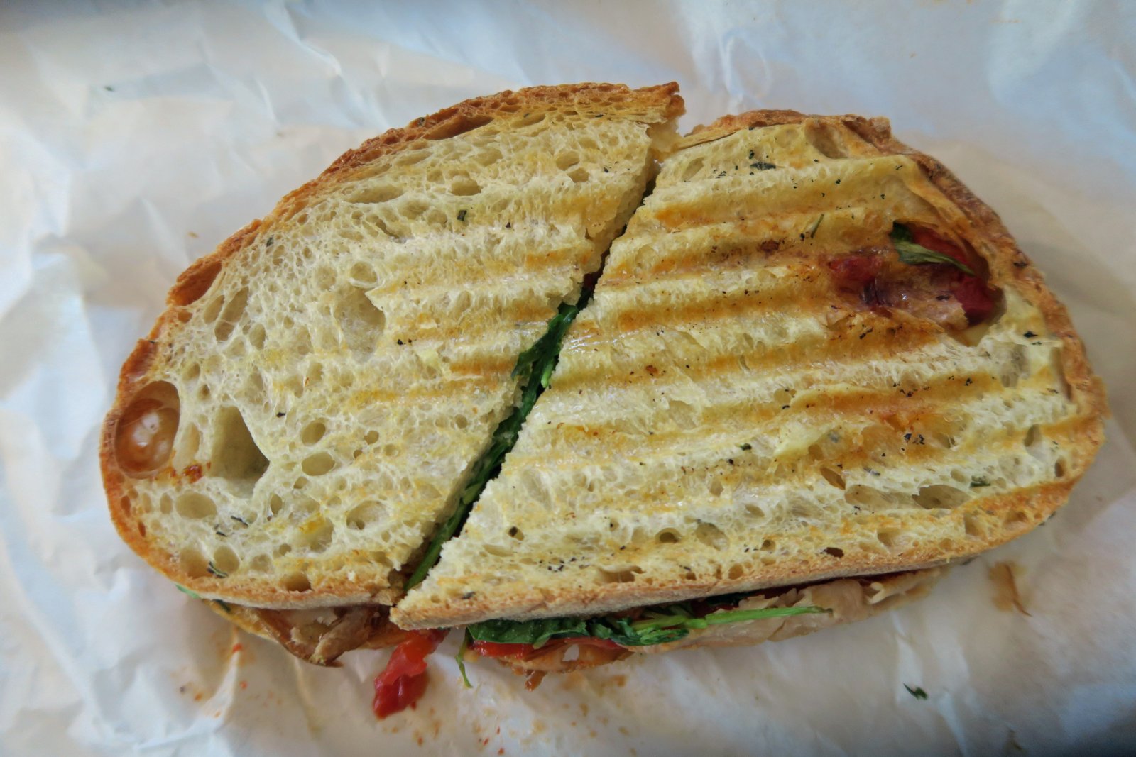 I ordered the Smoked turkey Panini ($10) which seemed a bit "light" as I carried it home. So when I opened it….