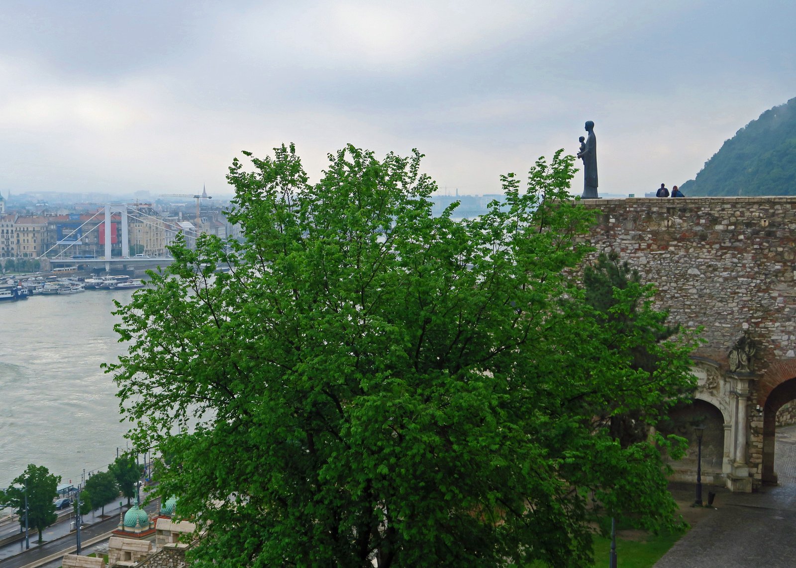A statue of the Virgin Mary looks over the Danube to the Pest side. The statue was erected fairly recently.
