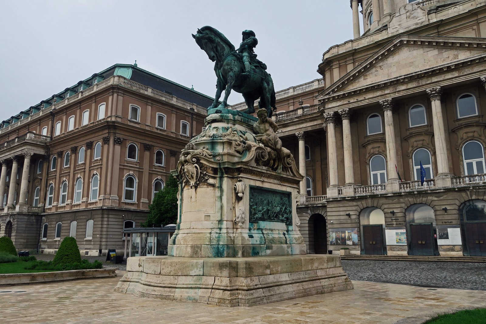 The grand statue in front of the castle is of Eugene of Savoy; who helped to drive the Ottomans out of Hungary.