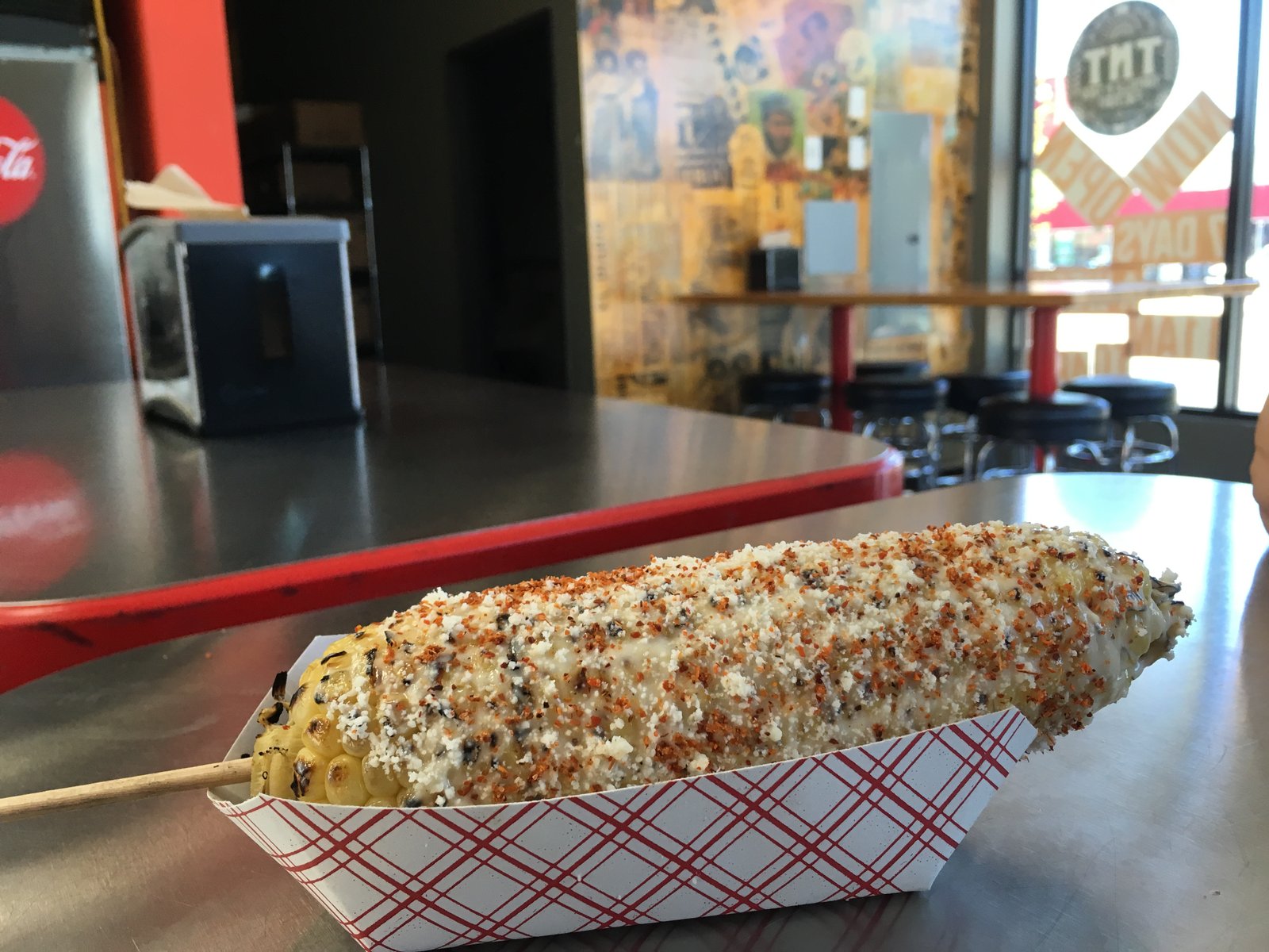 Elote asado ($3.25) We figured it would come in a cup. We had to wait. It was boiled first, then grilled then topped with Cotija and Tajin. Such attention to detail. Fresh, sweet, crisp corn.