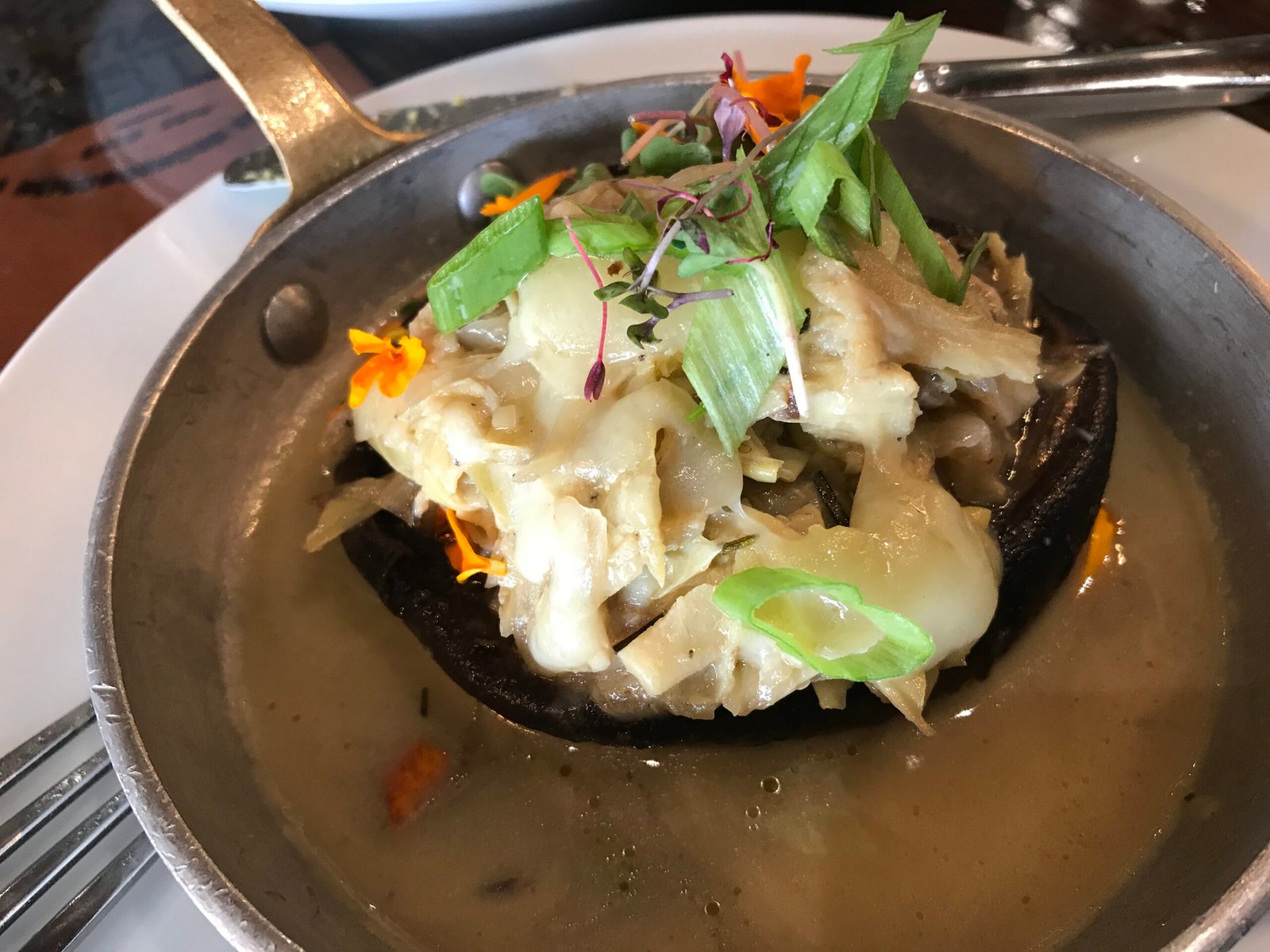 We also got the Stuffed Portobello ($15). The menu read, "heirloom tomato, artichoke, bell pepper chutney + caramelized onion + manchego".