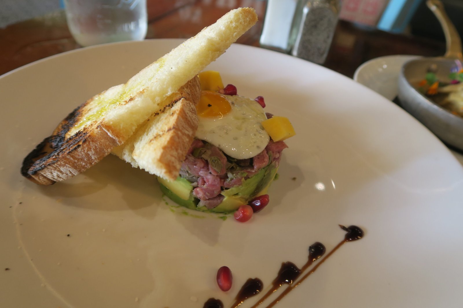 You might want to just skip this if you've read yesterday's post on Senia. The bison was chopped too large for our tastes, thus making the already lean Bison even more tough. The meat also had a slight metallic tinge to it. I love the mellow beefy and slightly sweet flavor of Bison; remember the Bison Nahm Tok I made? But this just didn't seem to do the meat justice. It was more than half avocado; which was perfectly ripe and creamy, though the Quail Egg was overdone and wasn't runny enough to help out the dish.