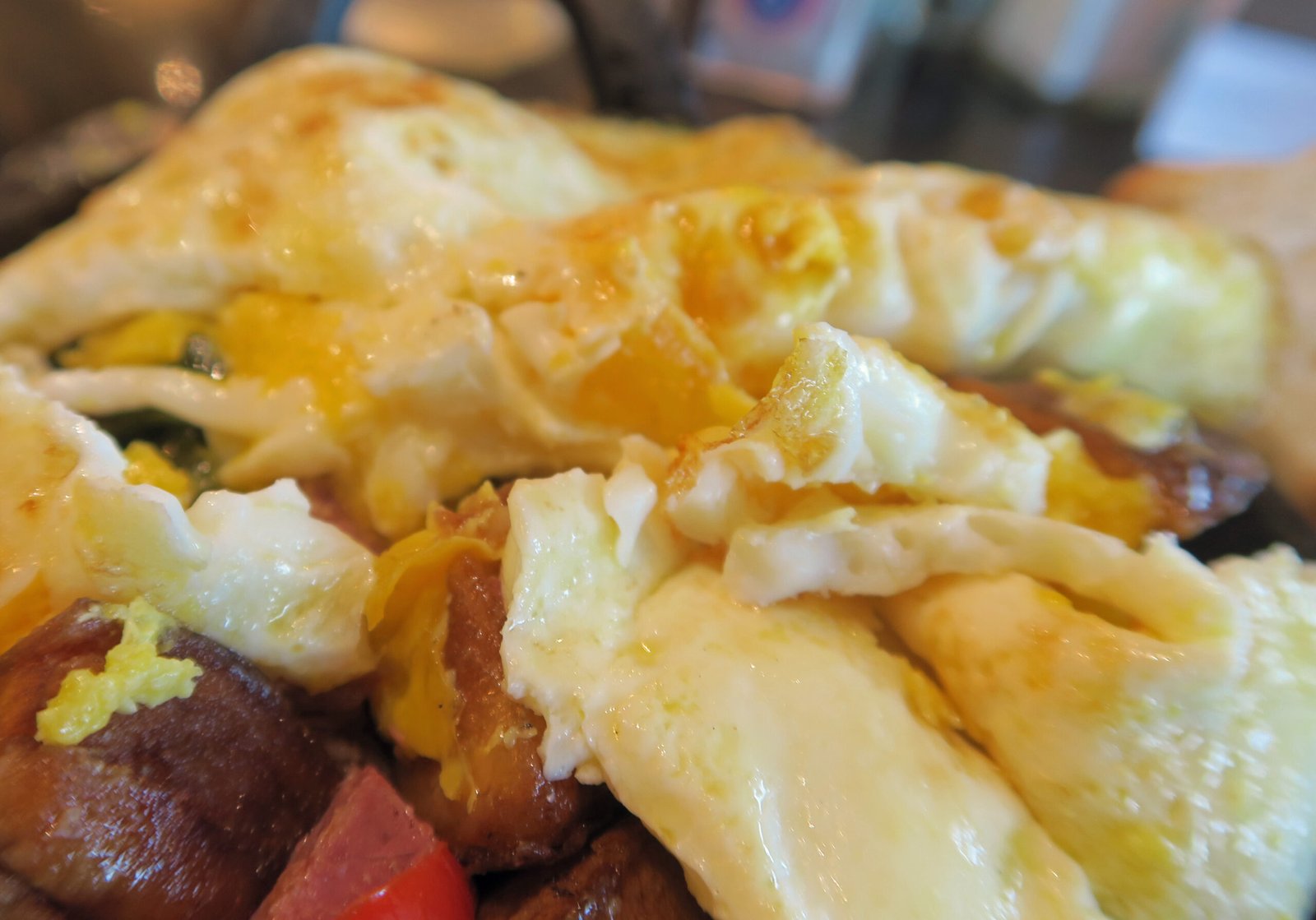 The highlight of my meal was the focaccia; which while being on the salty side is crisp around the edges with some decent yeastiness. I ordered my eggs over easy; but they came out over-cooked. The potatoes were nicely fried; well seasoned. The skillet was just that….it looked like everything was just thrown into a skillet. The bell peppers were hard, there wasn't any caramelization on the food and it wasn't heated enough.