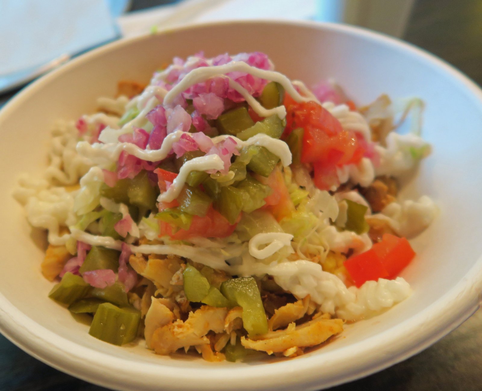 I enjoyed the Chicken Schwarma Bowl; while being a bit "tame" in terms of flavor; the garlic sauce wasn't too bad and I enjoyed the pickled vegetables, and the rice was nicely flavored and fluffy.