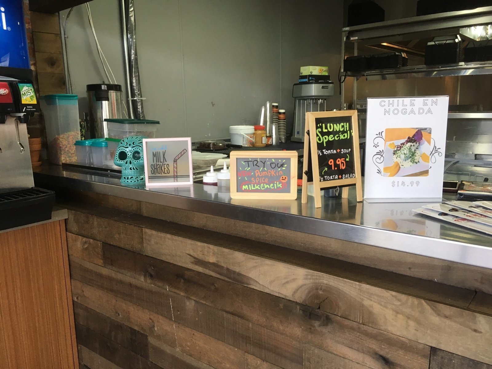The counter also had a photo of a special of Chile en Nogada ($14.95). This item is usually prepared around Mexican Independence Day (September 16), (the dish is meant to be the colors of the flag of Mexico, and the red pomegranates need to be in season). It's a poblano chili, stuffed with picadillo and topped with a walnut based white sauce and pomegranates. Sweet, savory, a bit salty, crunchy, soft…everything that describes a great melding of flavors and texture in each bite.