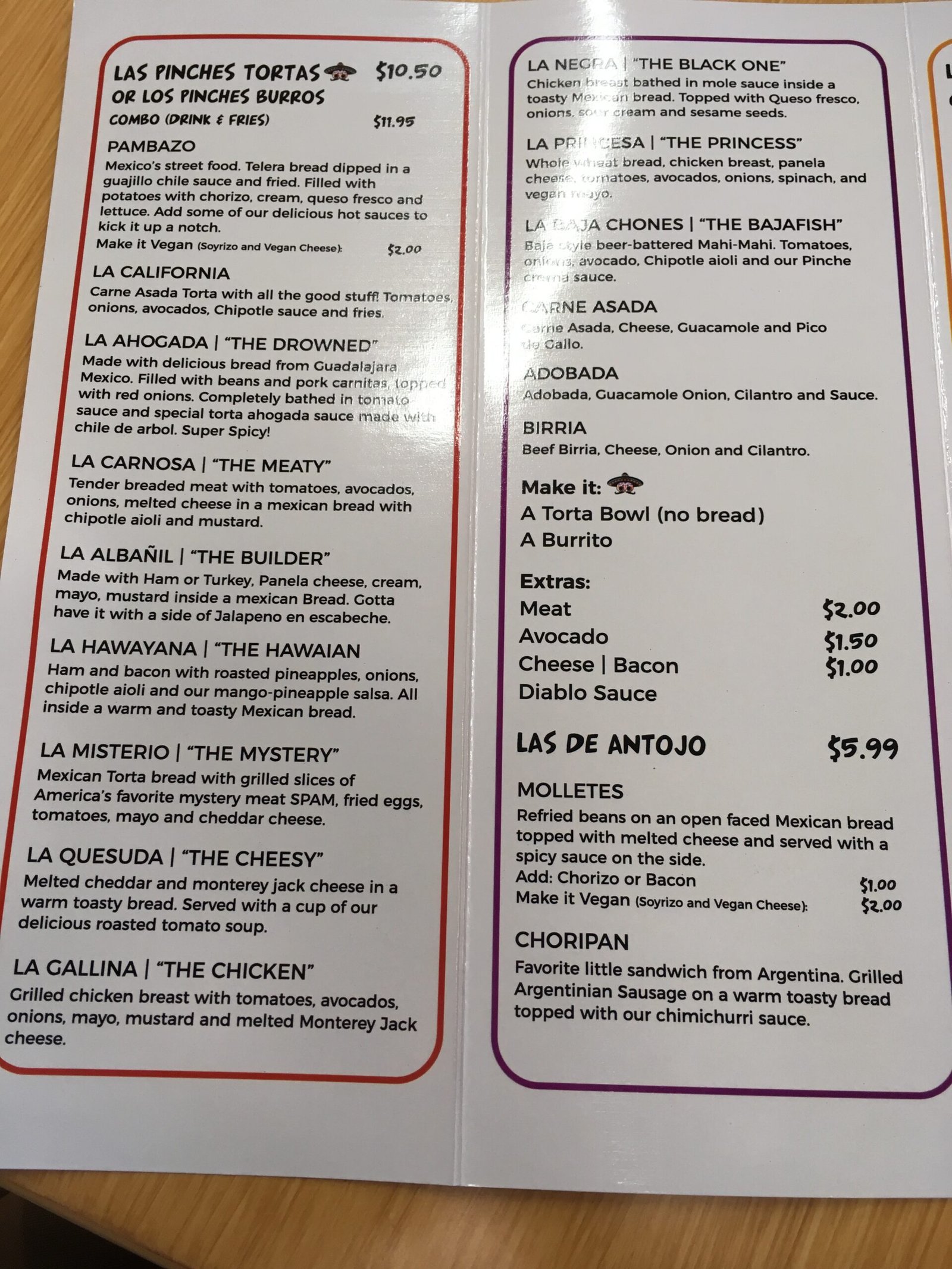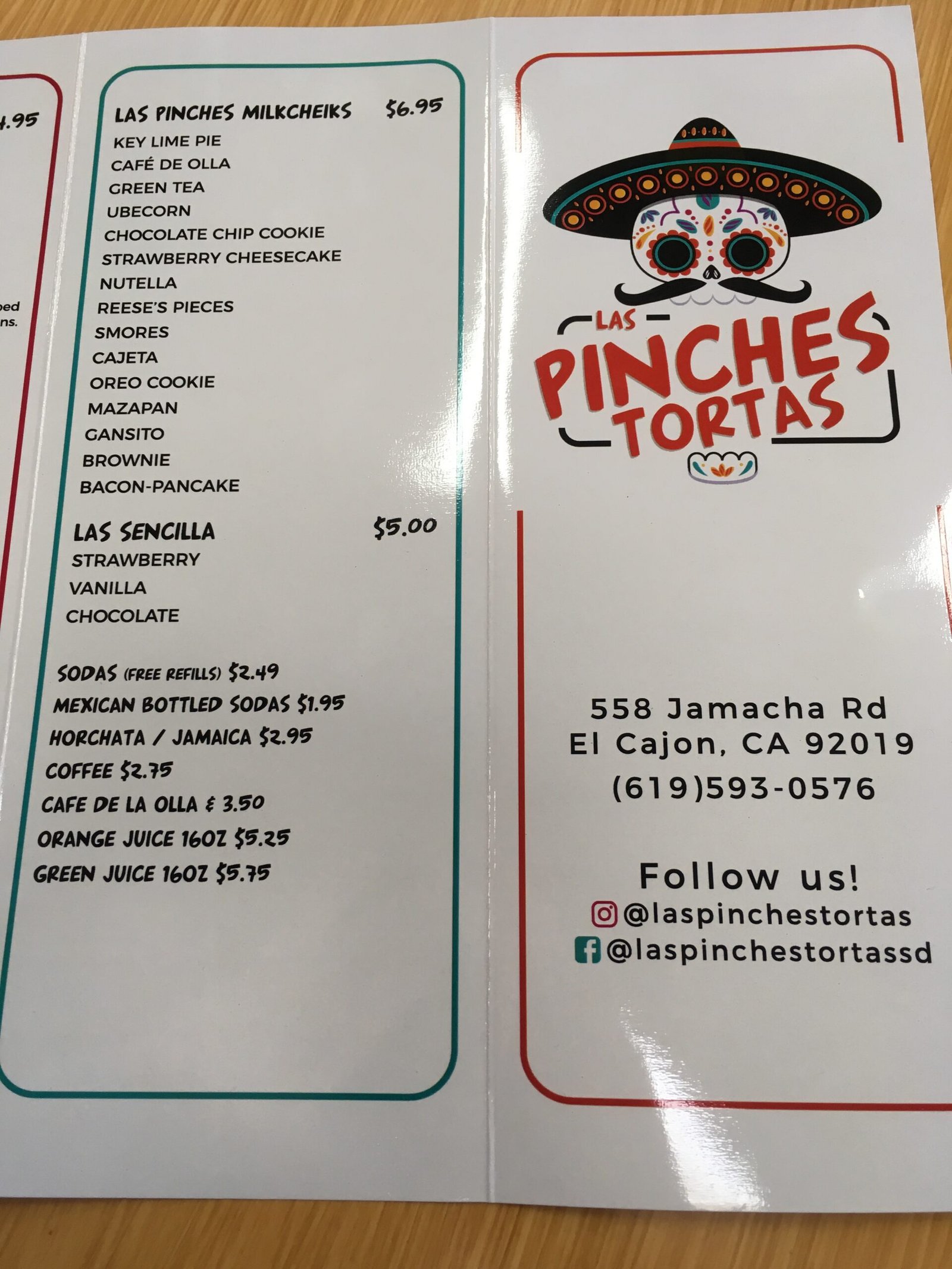 Las Pinches Tortas 558 Jamacha Road El Cajon 92019 (619)593-0576 Open Mon-Fri 10-9, Sat 9-9, Sun 9-8