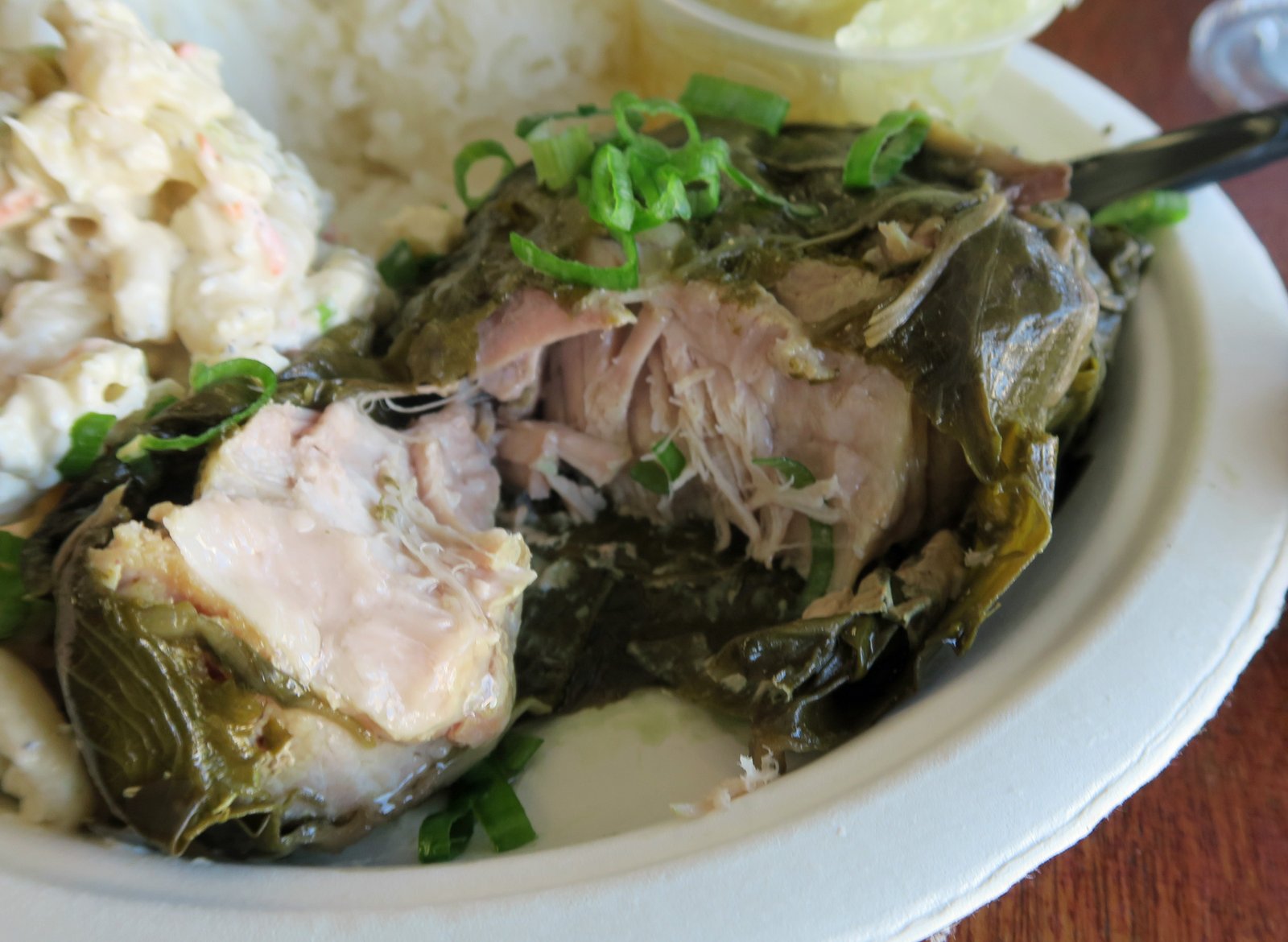 I ordered my Laulau plate and had a seat. Soon, several groups of people arrived…..many of them asking "where's Uncle Nelson?" From what I overheard, they had only made thirty laulau, and I'm sure they soon sold-out. But I did get mine.
