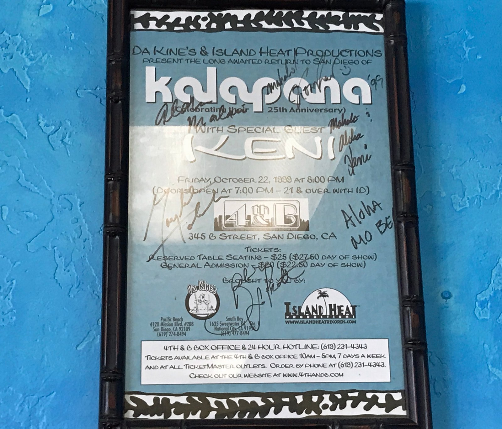 It was nice to see a couple of multi-generational families come in….I haven't seen this many people from Hawaii in one place on the Mainland in a while. "Uncle Nelson" is indeed beloved. And he's done quite a bit over the years for the Ex-pat Kama'aina community in San Diego. I actually went to that Kalapana Concert in 1999 partially sponsored by Da' Kine's. I was consulting here and stayed the weekend. Kalapana, along with C&K and Olomana defines what contemporary local music was to me when I was growing up back in the 70's. My friends brother sneaked us into Top Ada Shoppe to hear Kalapana and then later Summer play. I felt sad at that concert in 1999 because it was the year that Mackey Feary committed suicide. RIP Malani Bilyeu who passed away at the end of 2018.