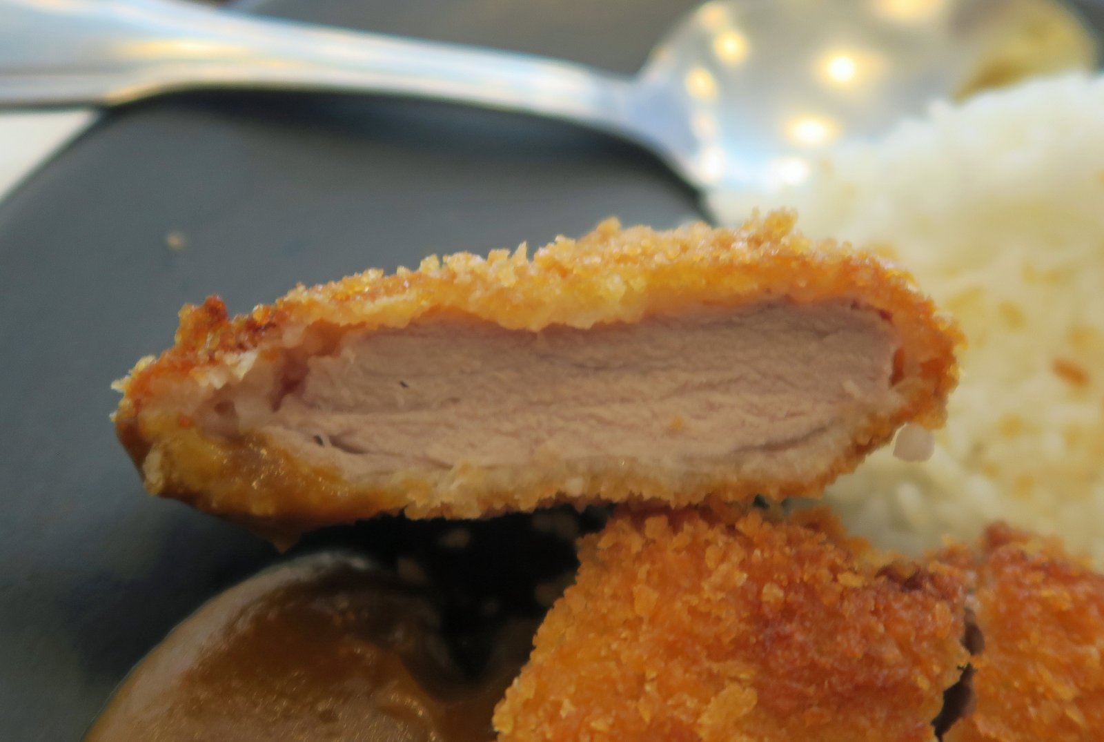 It had been sliced to check doneness….I guess they are still figuring things out. The chicken was on the dry side; they karaage hadn't been marinated very well and was really bland; the batter lacked crispness.
