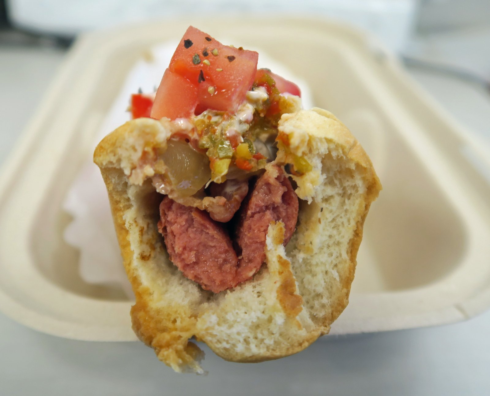 I also ordered the "O" and really enjoyed it. Russian dressing sounds a bit odd; but it went well with the diced tomatoes and slice of bacon……the flavor of the hot dog really complemented the