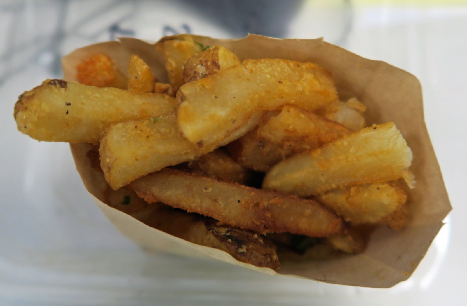 And yes Loren, those fries are really good. The potatoes have been lightly dusted, giving it a bit more of a crunch and the interior is nice and fluffy. The seasoning has enough salt and spice to keep things interesting……I only ate a few and spread the rest around the office and folks really enjoyed it.