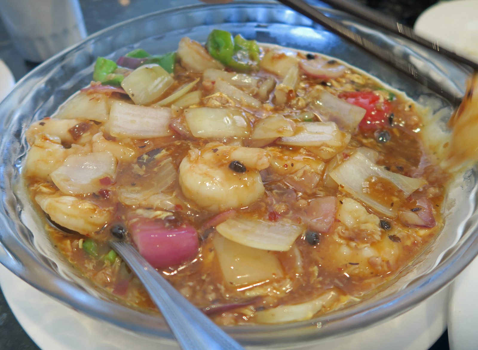 I've noted the strange affinity the Missus has for Shrimp with Lobster Sauce before. The version here is too gloppy and greasy, and on the salty side.