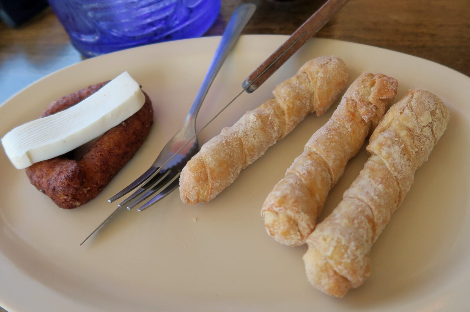 Next up the Mandoca con Queso, a sweet cornmeal cake with cheese and Tequenos, think of a white cheese, soft and a tad saltier than mozzarella, wrapped with pastry……oh man, did I love the salty-yeasty-mild sweetness.