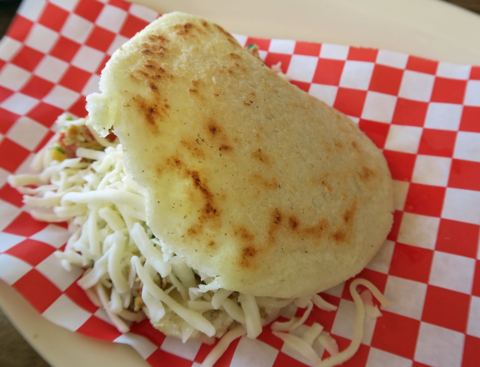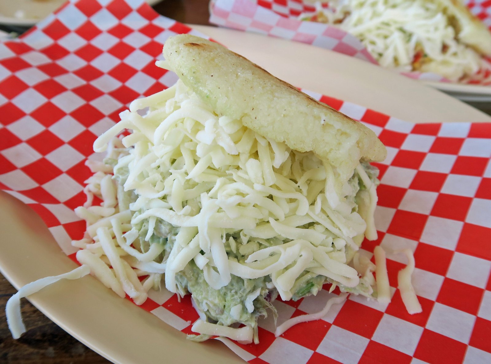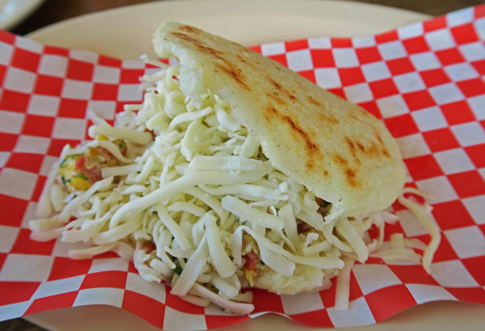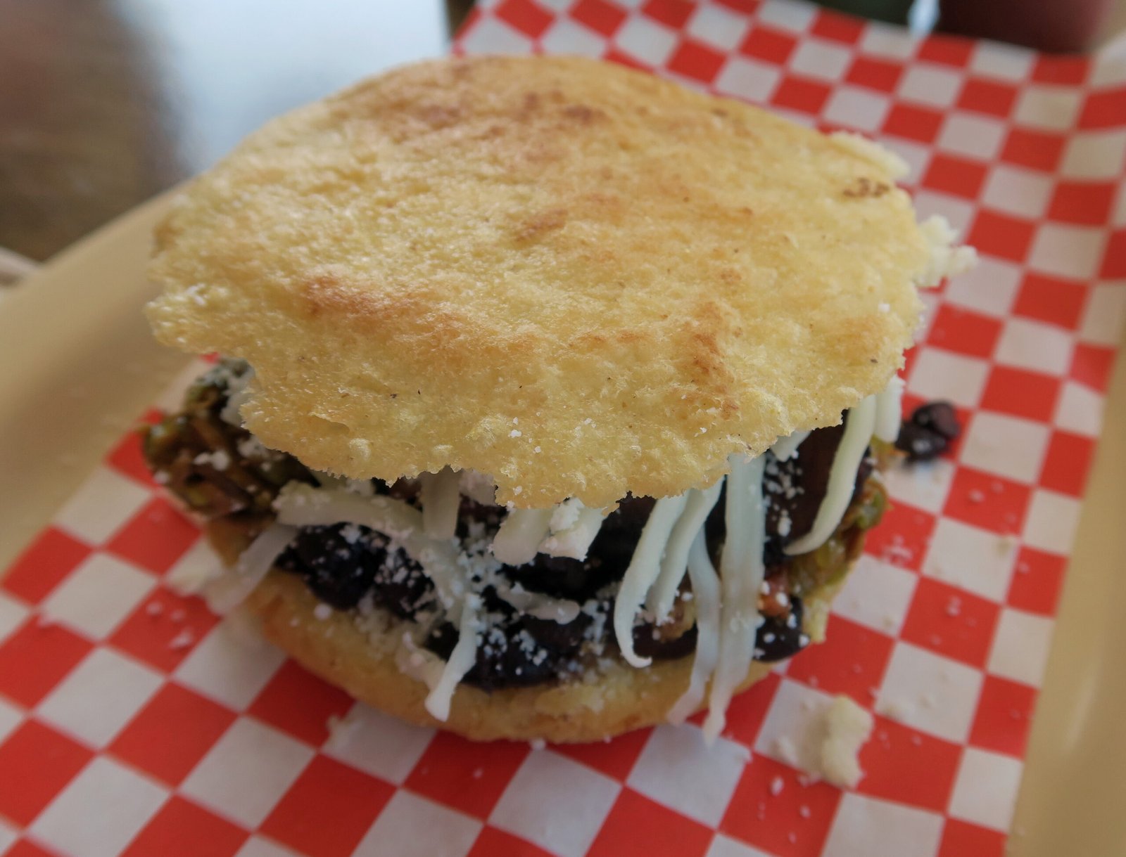 Alle wanted me to have a taste of her arepa, so I grabbed the knife and fork; but she told me to put those away saying: "you're mi pana, so grab it with your hands and have a bite….no; two bites." I came to find out that "Mi Pana" means "My Friend" or "My Buddy" in Venezuelan slang. Loved the flavors; perhaps a bit on the rich side, but not overly salty, slightly milky from the cheese; the flavor from the arepa really stood out.