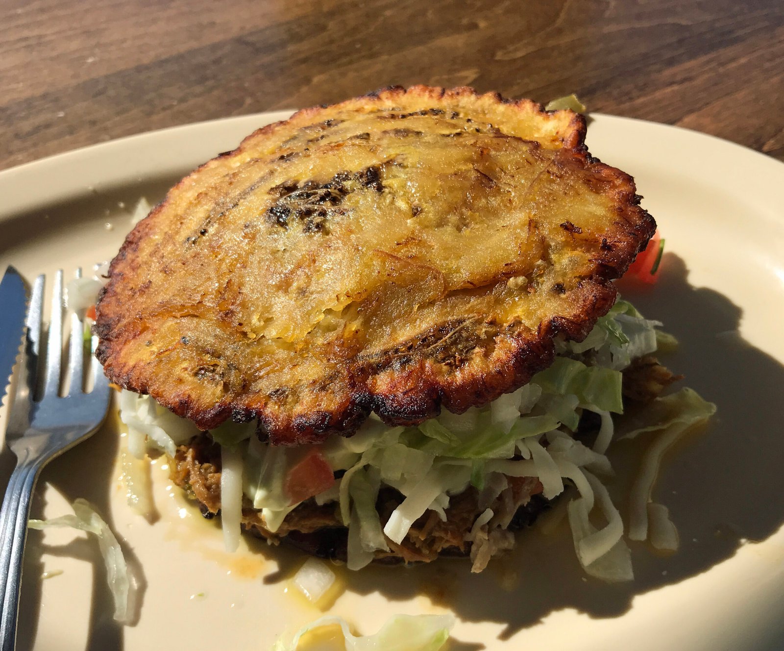 Man, that fried plantain was delici-yoso; slightly sweet, crisp edges, the interior was soft, almost bread like. The shredded beef was nicely seasoned, with a pleasant toothsomeness. The cheese was mild and milky; much like mozzarella. As you can tell; it was a messy sandwich, which dictated eating it with a fork and knife. It perhaps had a bit too much greens and mayo; but overall a very satisfying sandwich. Especially if you enjoy sweet and savory together.
