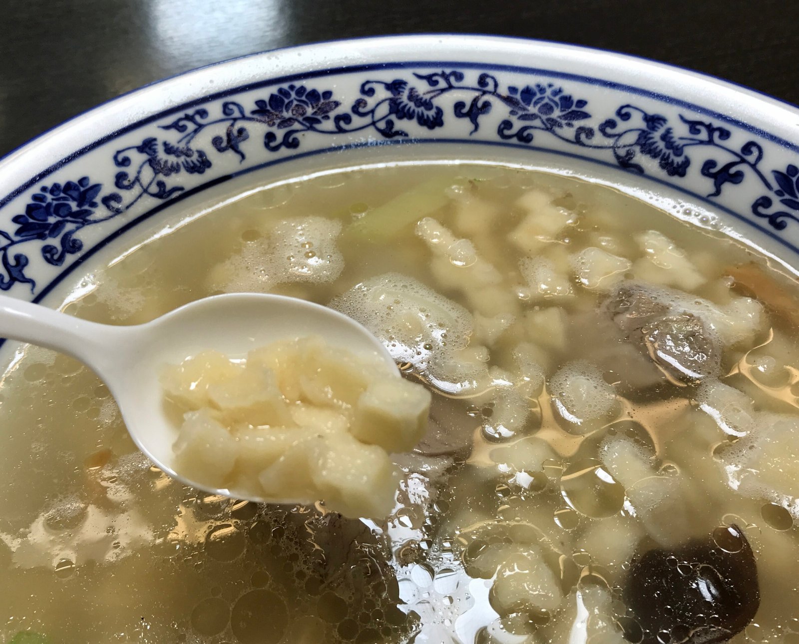 There was a scant three slices of lamb in the soup; which was actually nice and "muttony". Like I've said before, the "pao mo" that I've had in the states leaves much to be desired as it's really just gummy dough.